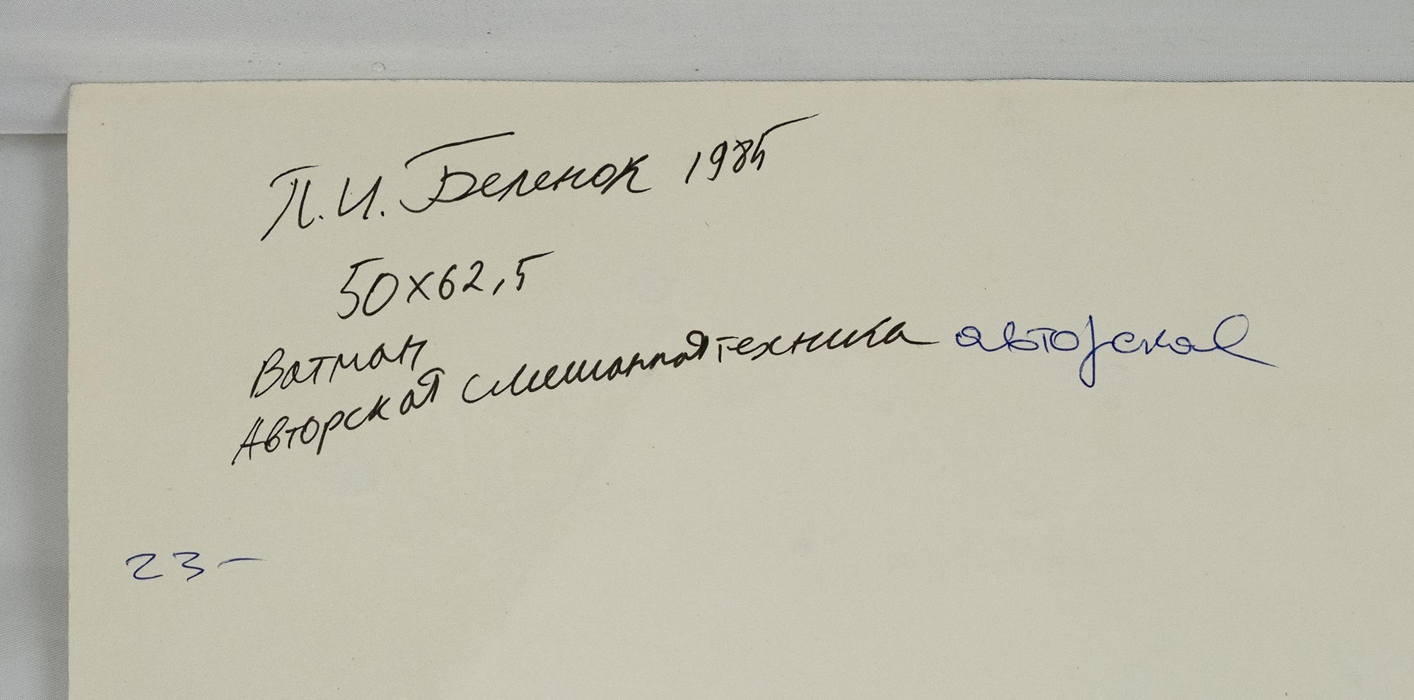 В левом нижнем углу подпись и дата шариковой ручкой: Беленок 85