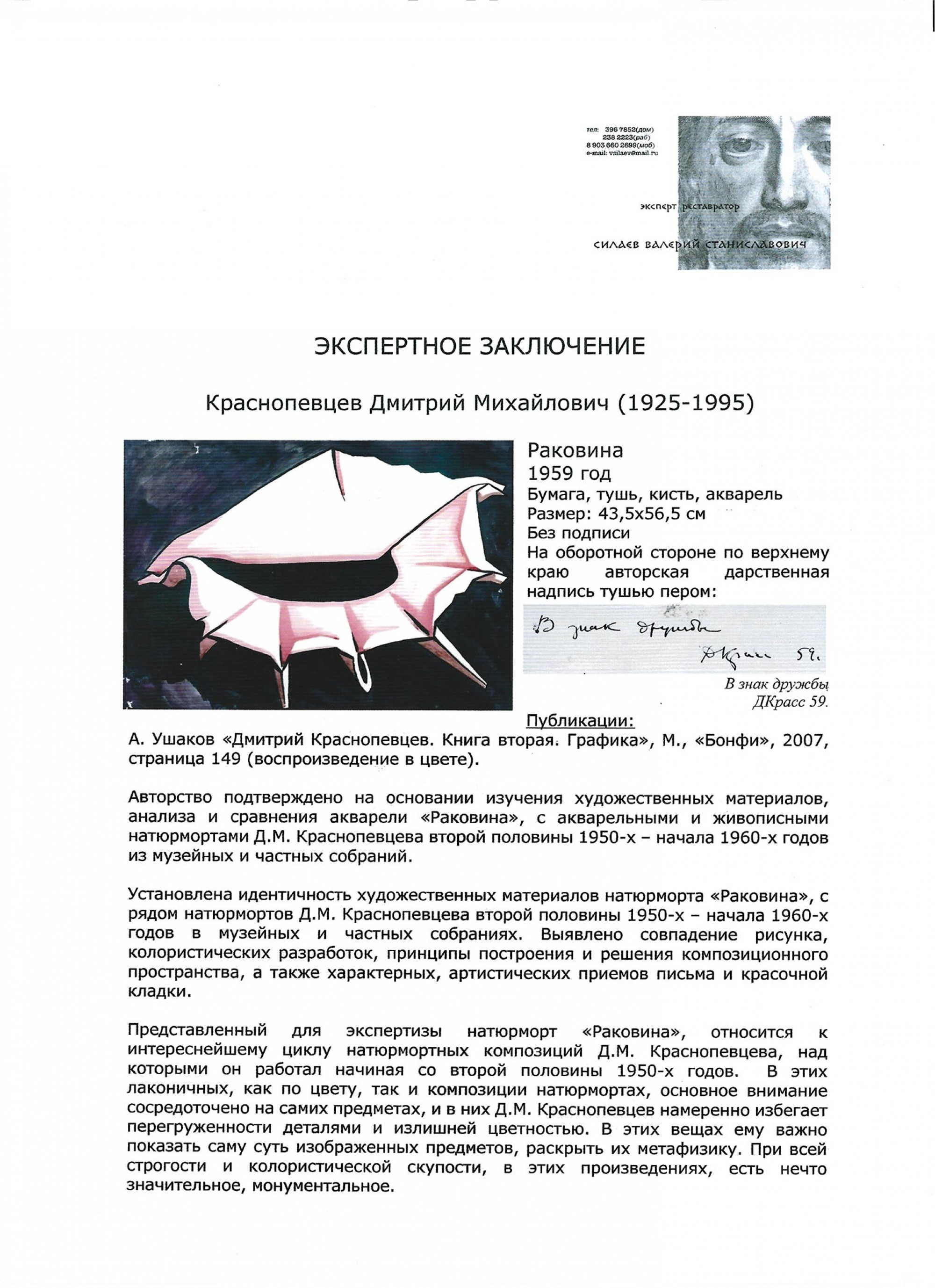 КРАСНОПЕВЦЕВ Дмитрий Михайлович (1925–1995) Раковина. 1959