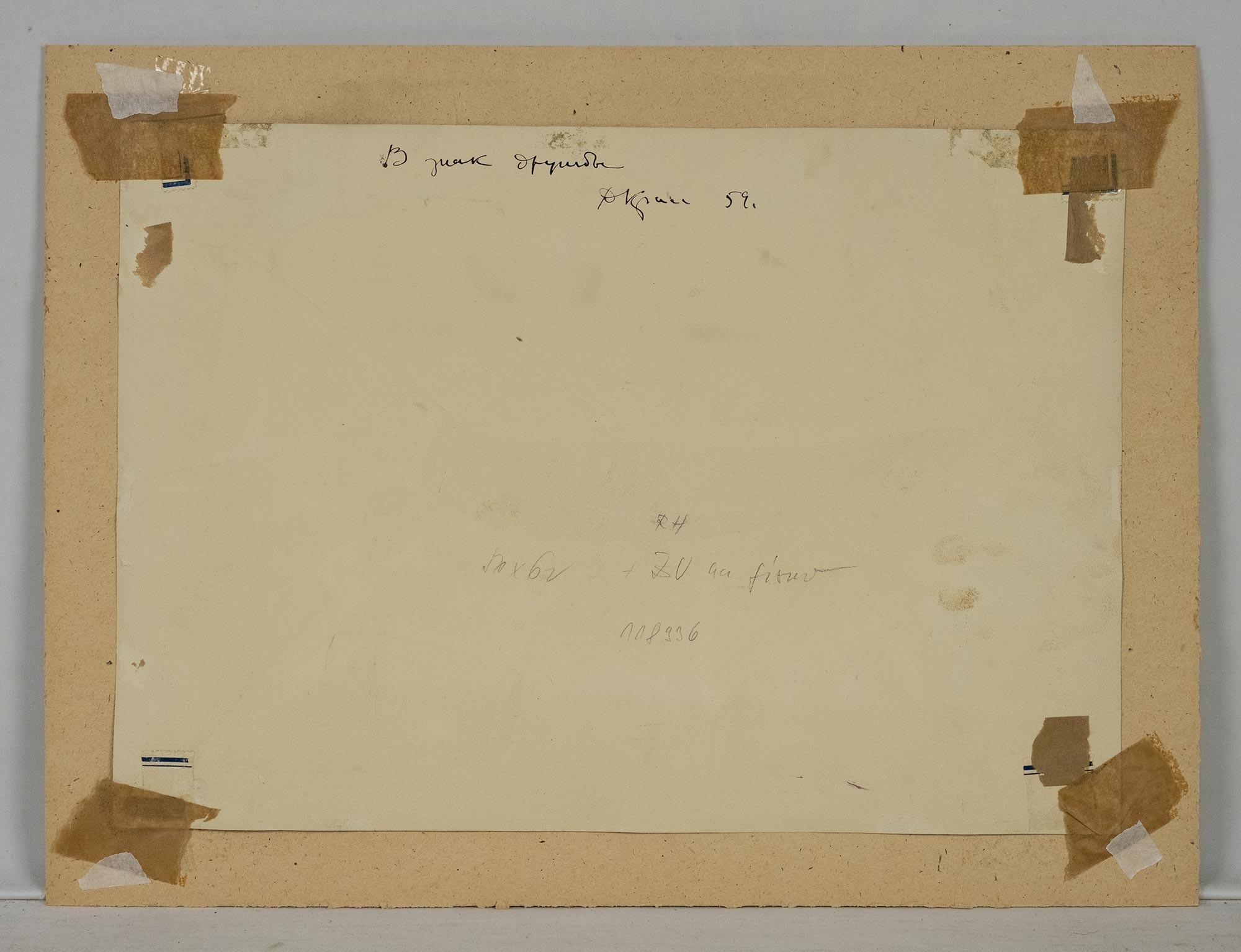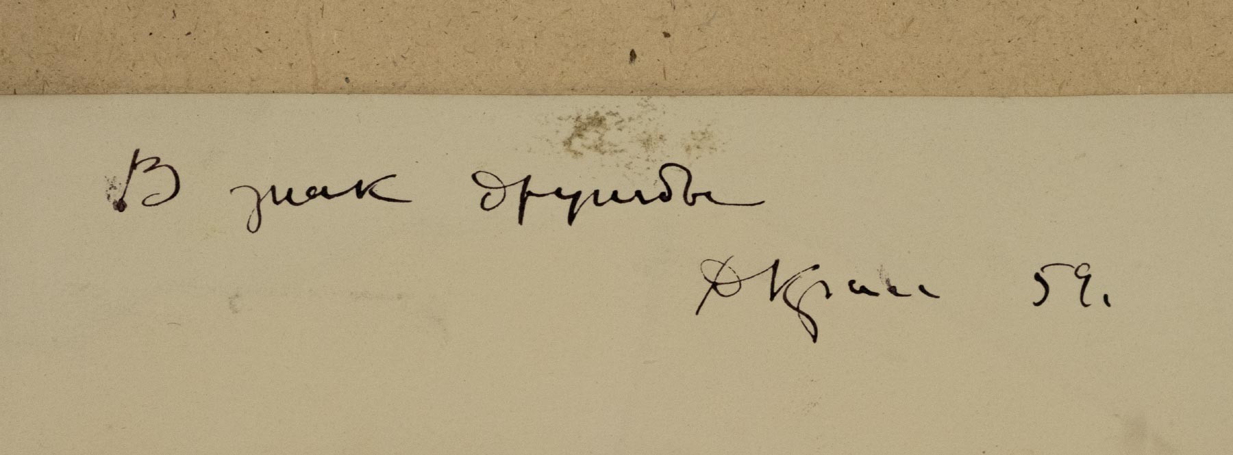 На обороте дарственная надпись, подпись и дата: В знак дружбы / ДКрасс 59.