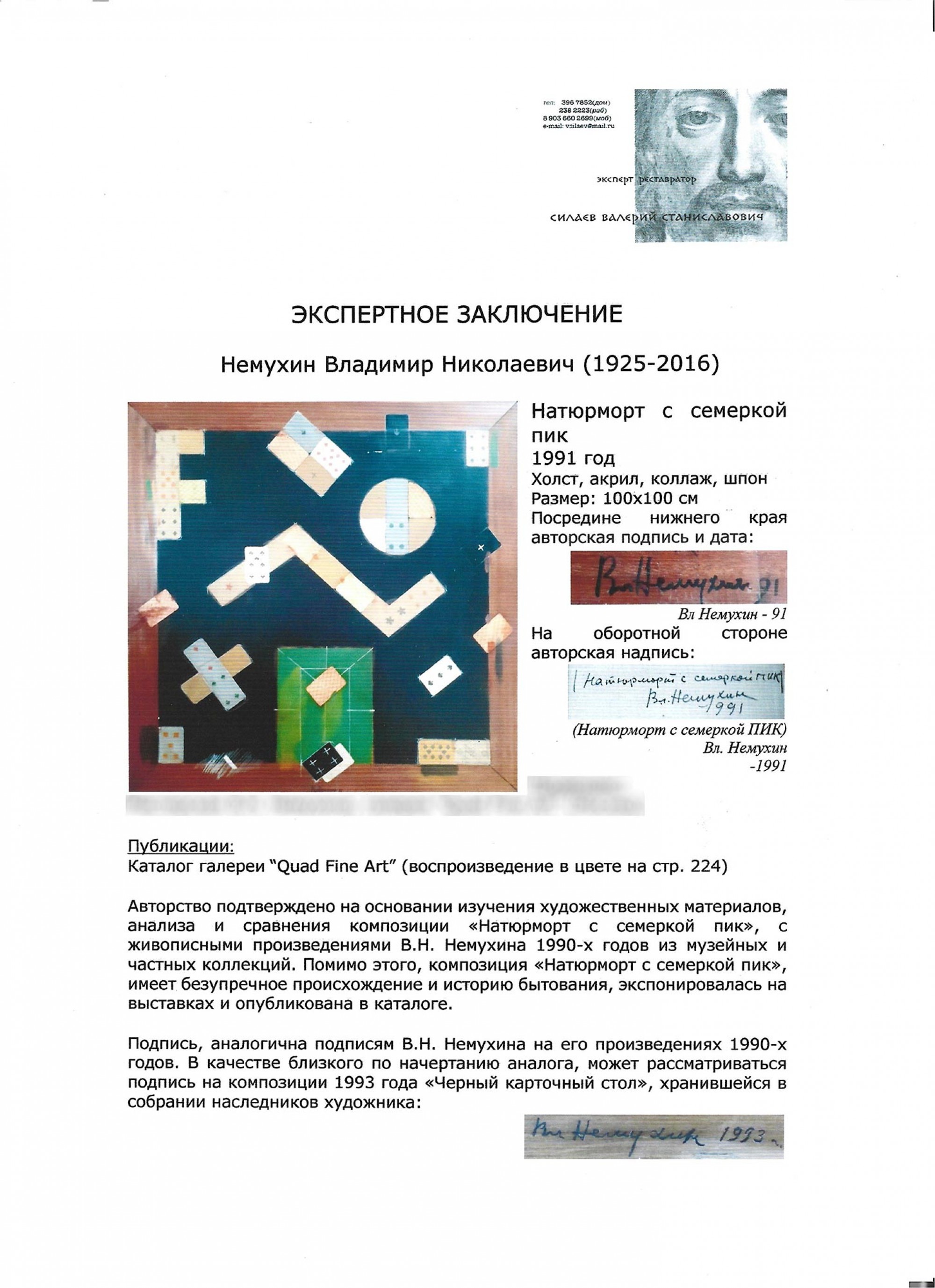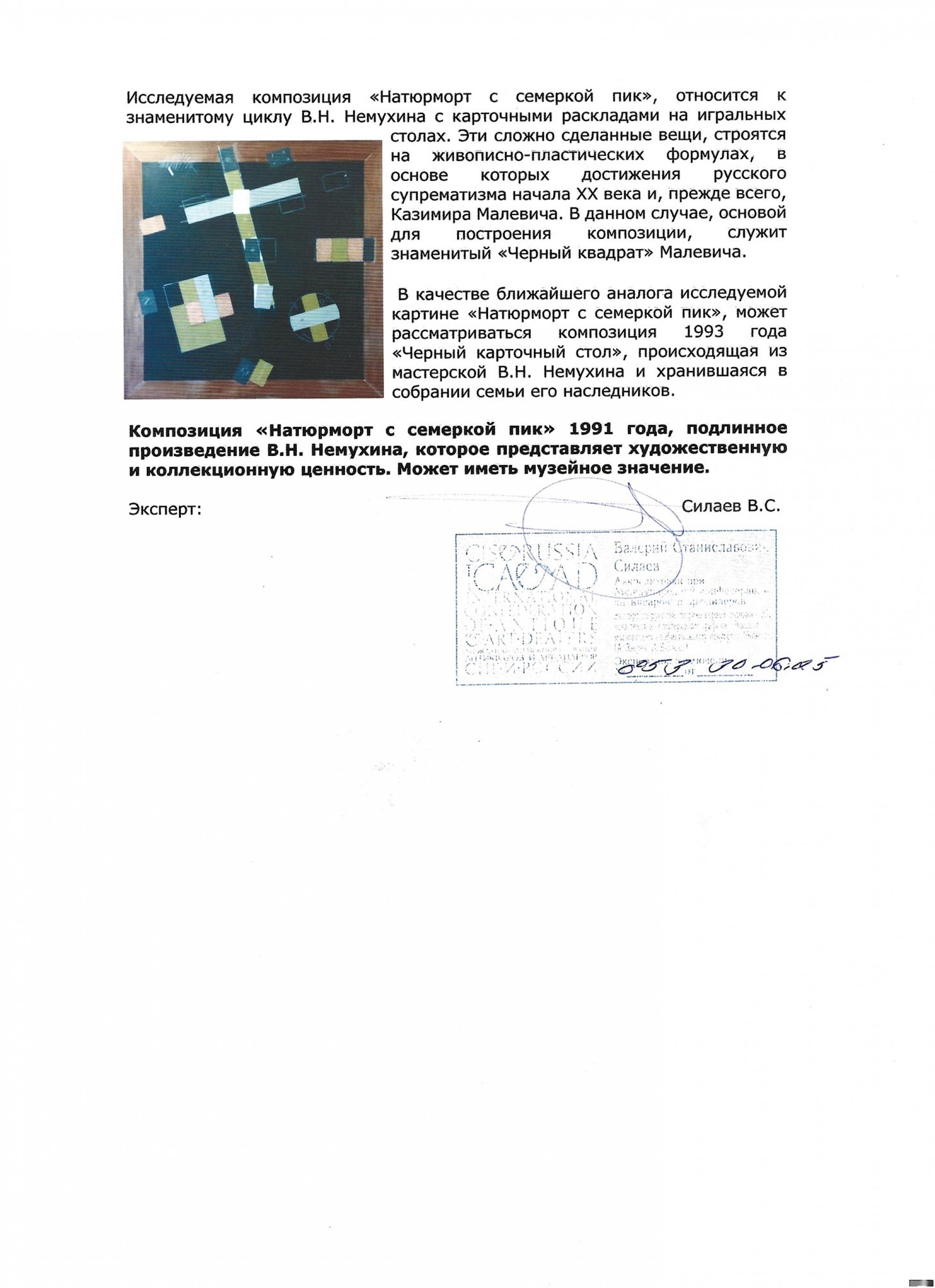 НЕМУХИН Владимир Николаевич (1925–2016) Натюрморт с семеркой пик. 1991