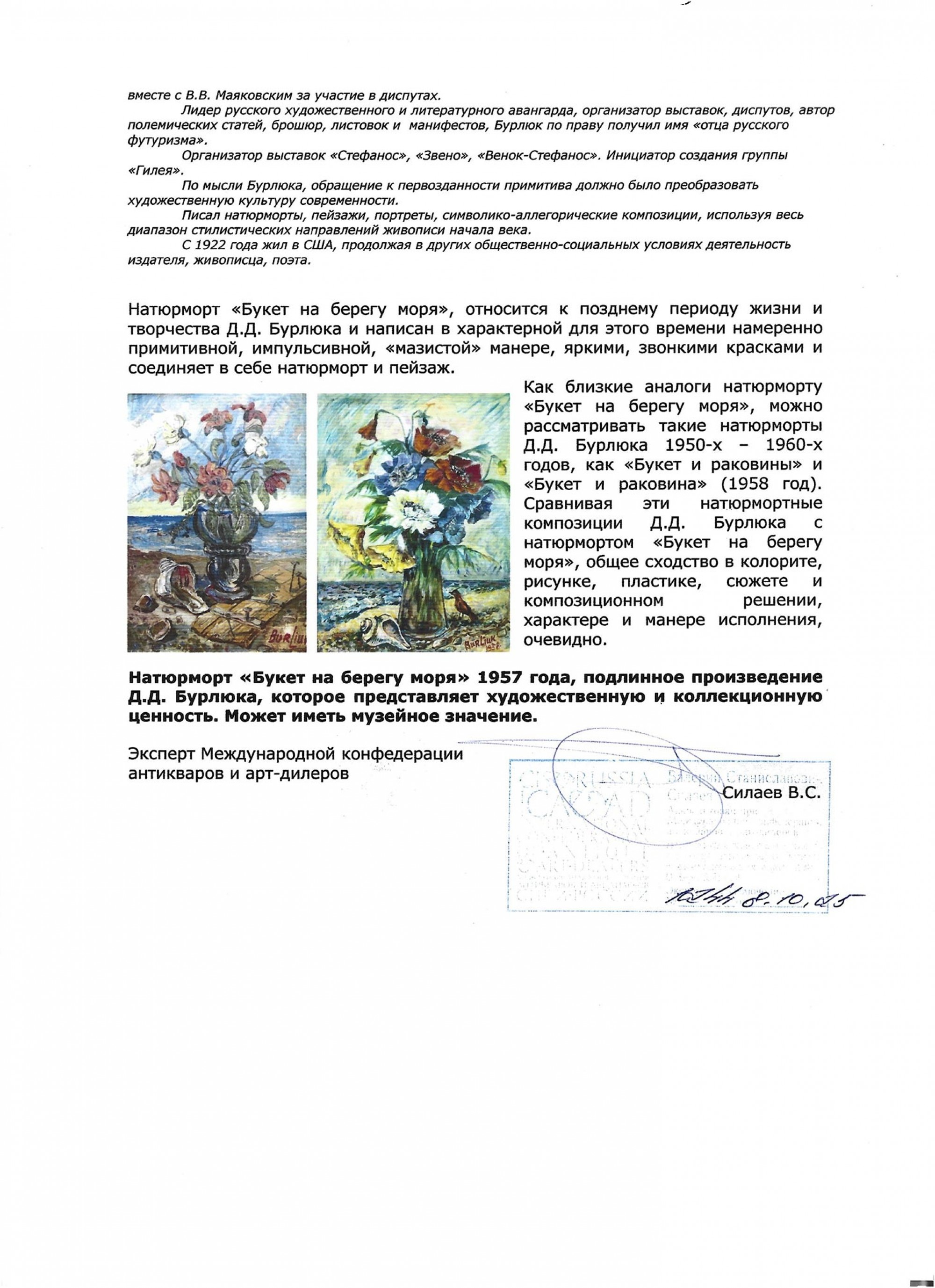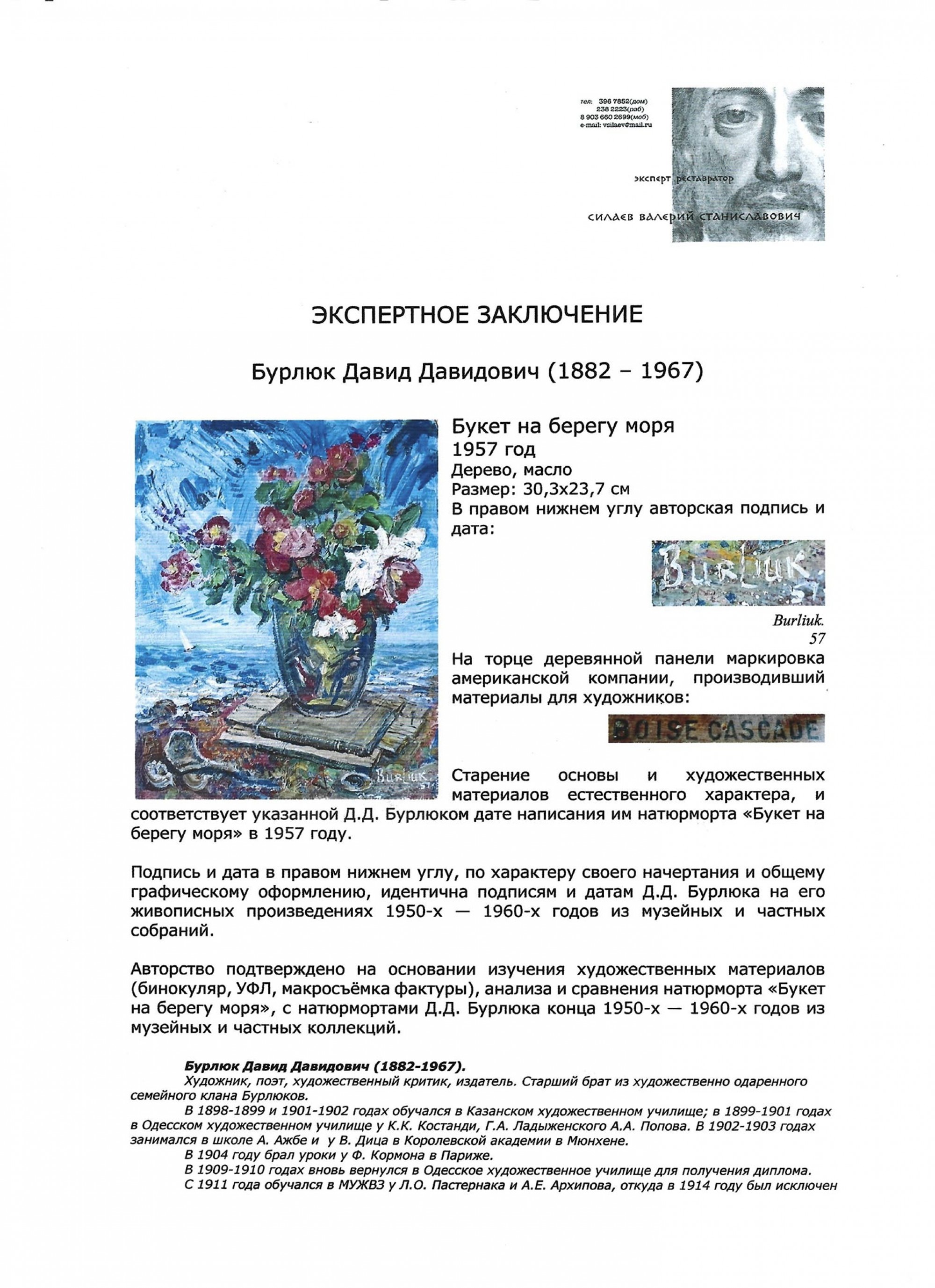 БУРЛЮК Давид Давидович (1882–1967) Букет на берегу моря. 1957