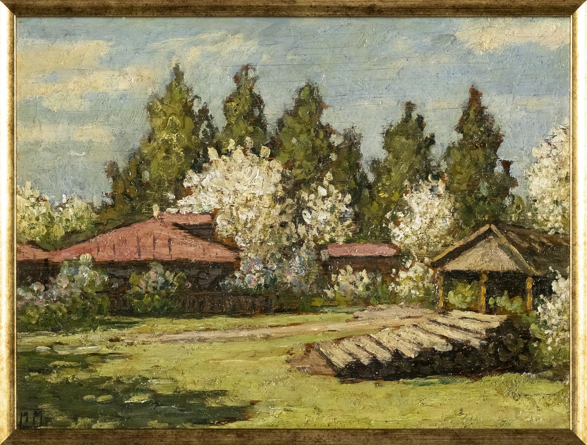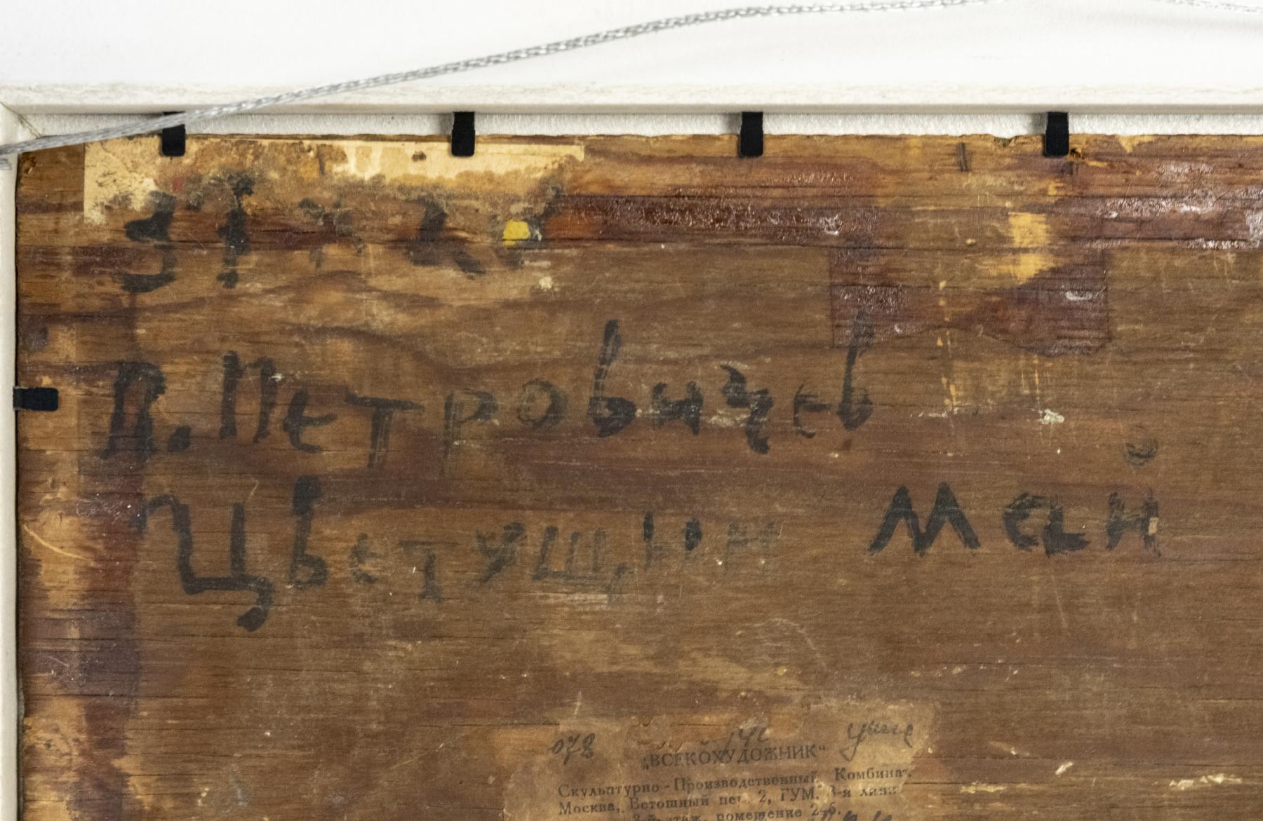 На обороте авторская надпись: 37 × 28 / П. Петровичев / Цветущий май