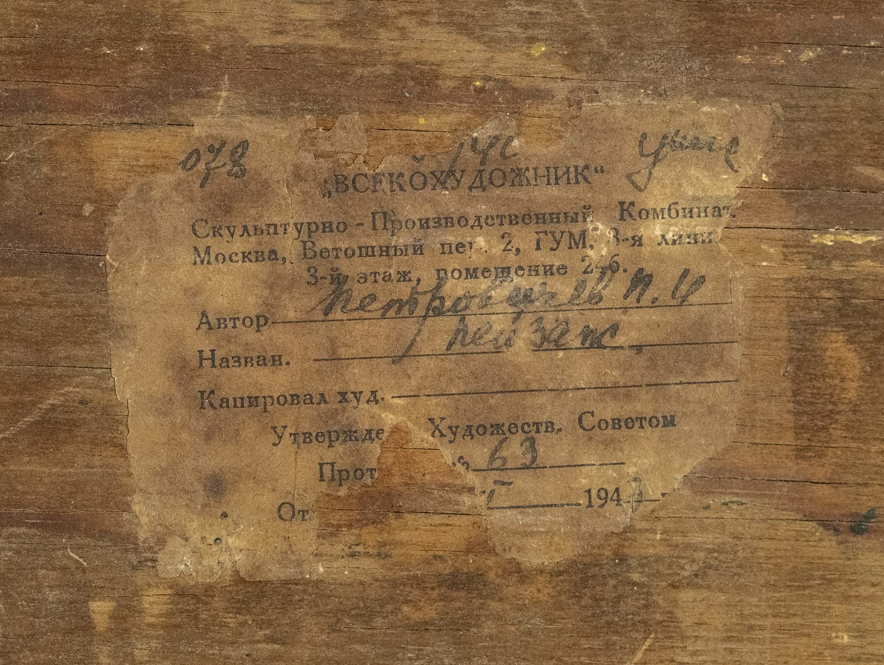 На обороте бумажная выставочная этикетка объединения «ВСЕКОХУДОЖНИК»
