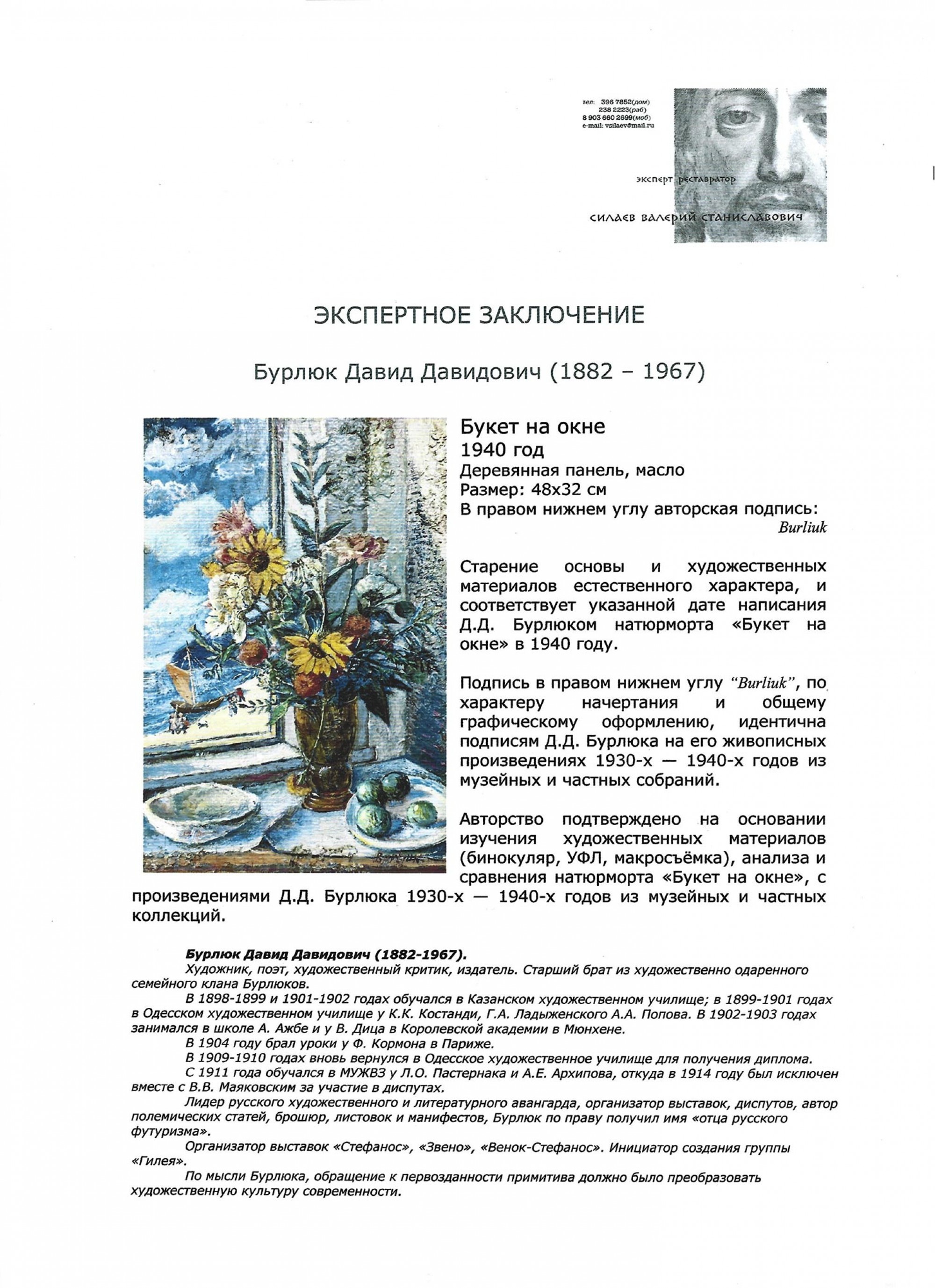 БУРЛЮК Давид Давидович (1882–1967) Букет на окне. 1940