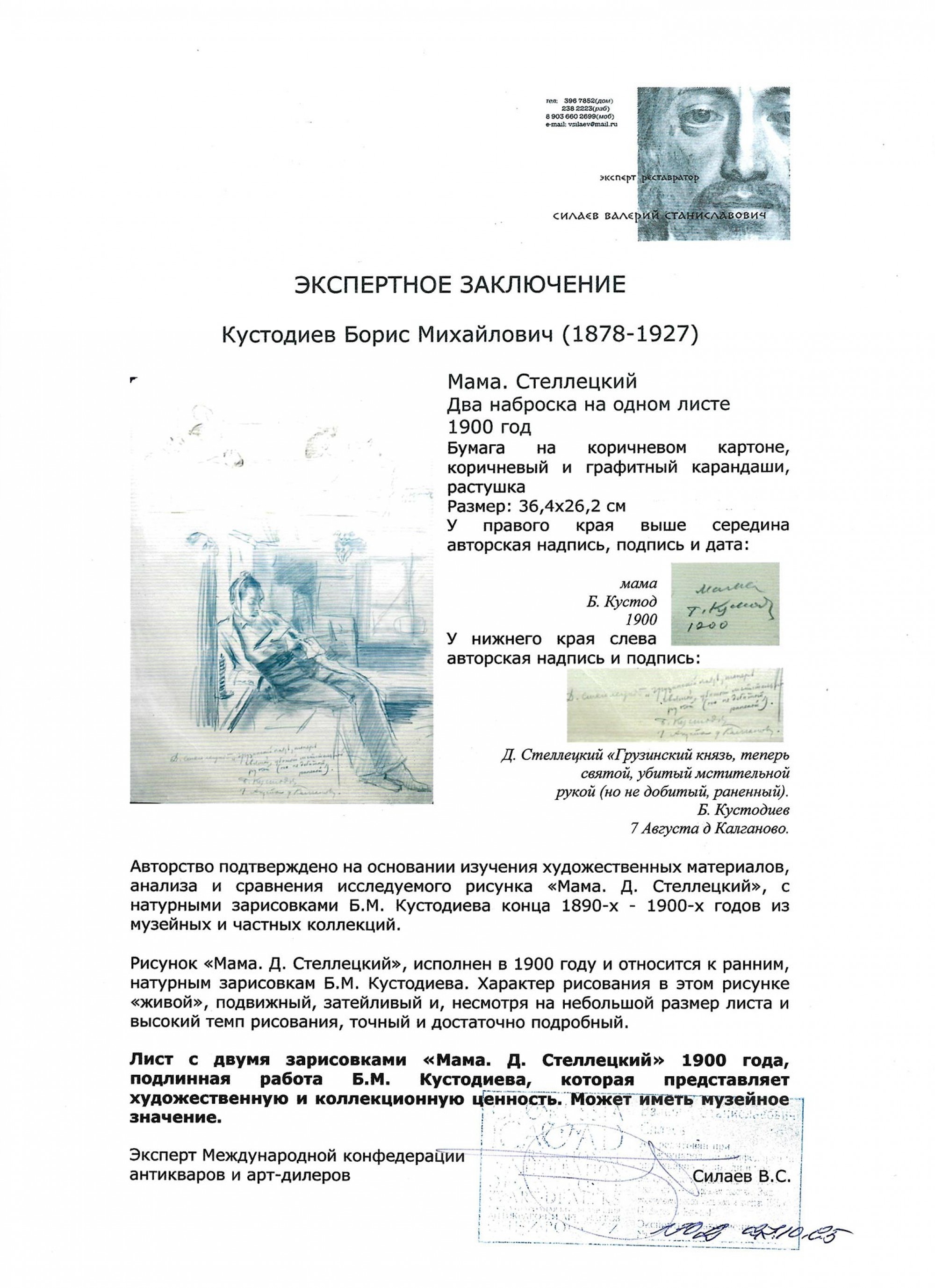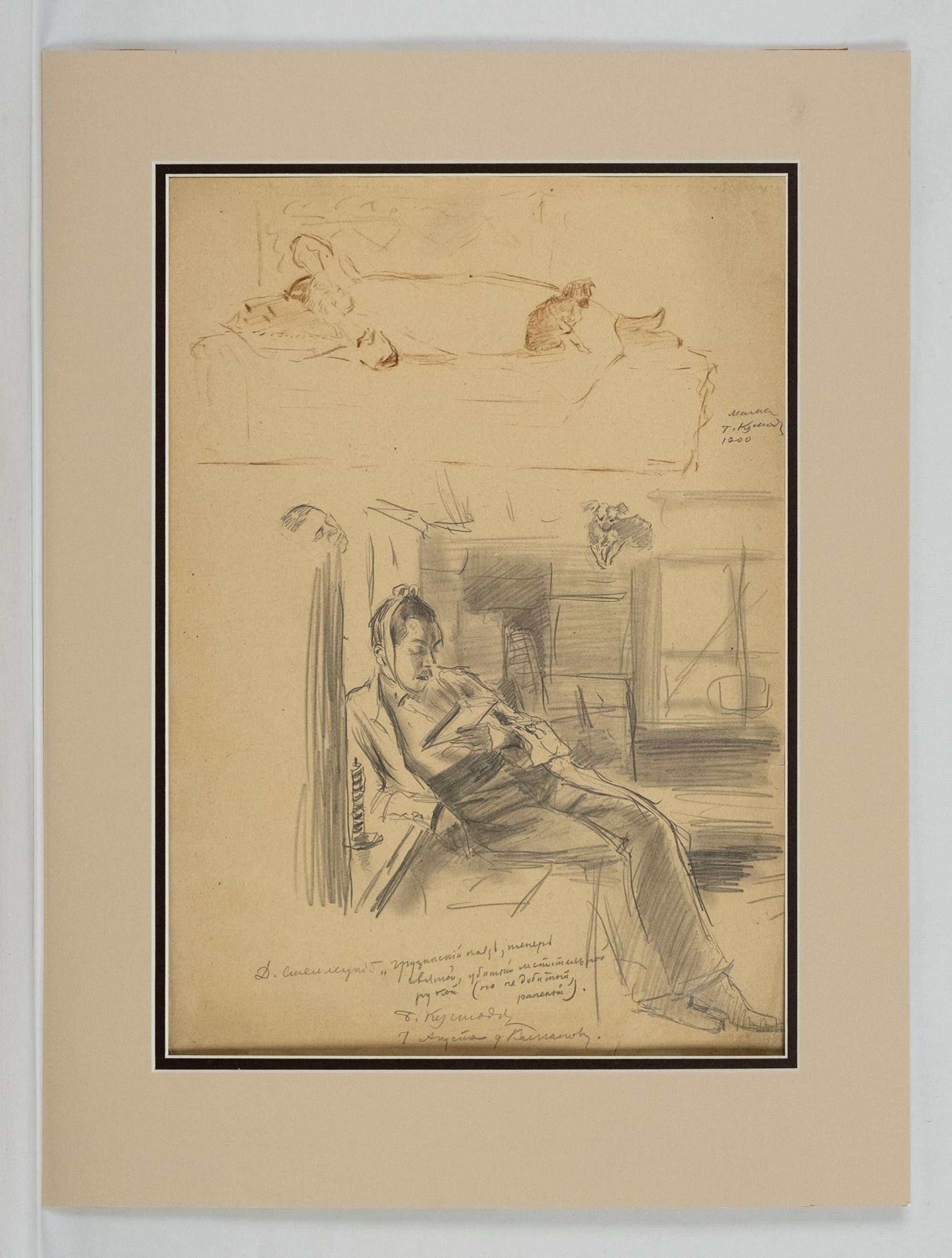 КУСТОДИЕВ Борис Михайлович (1878–1927) Мама. Стеллецкий. Два наброска на одном листе. 1900