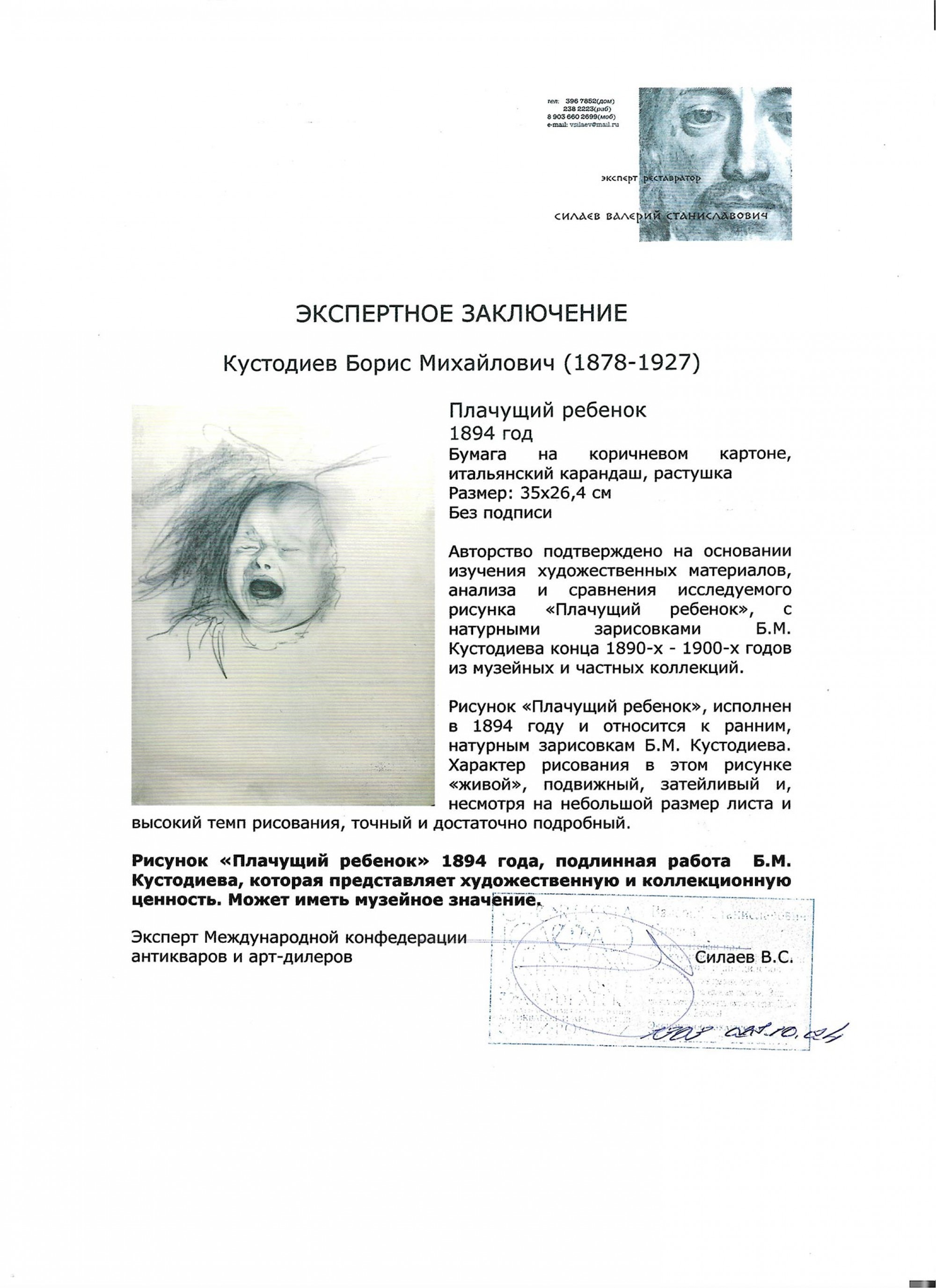 КУСТОДИЕВ Борис Михайлович (1878–1927) Плачущий ребенок. 1894