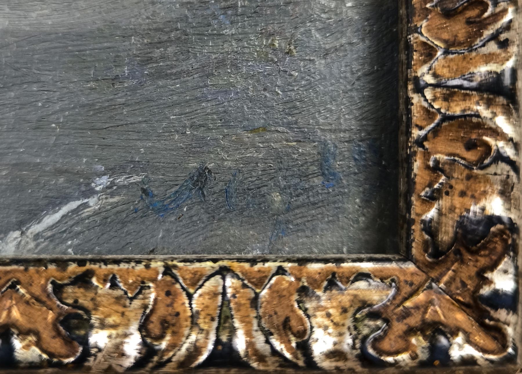 Работа оформлена в паспарту в раме под стеклом. Размер в раме: 55 × 55