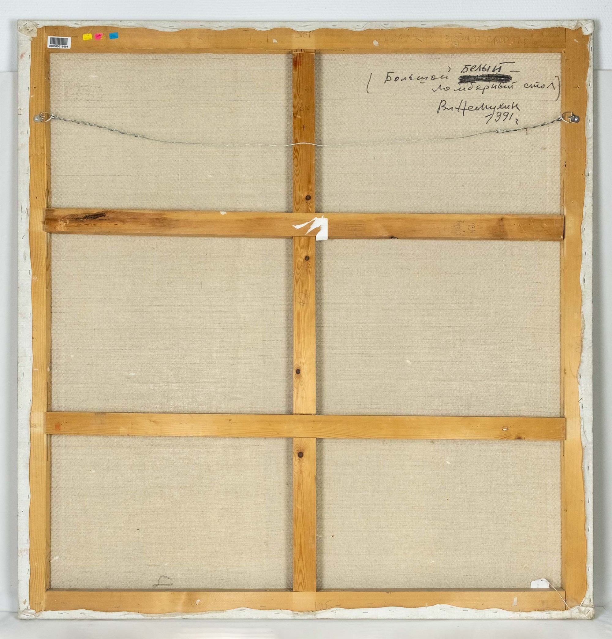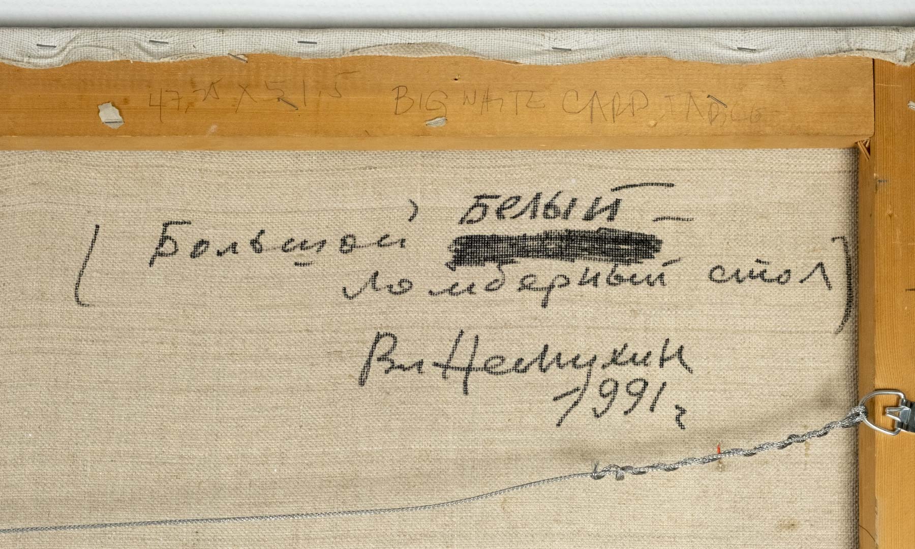 На обороте название, подпись и дата: (Большой белый ломберный стол) / Вл Немухин / 1991 г.
