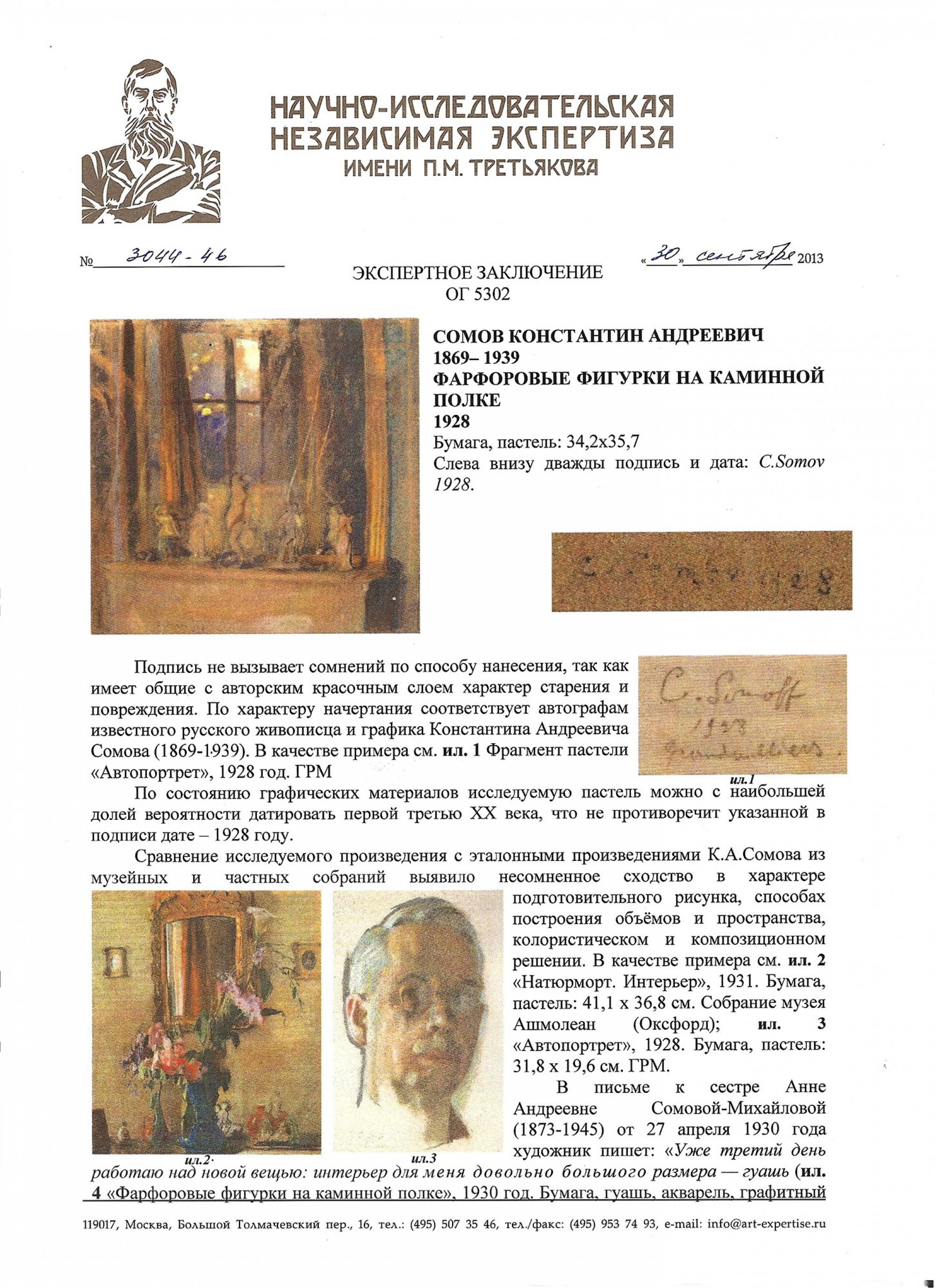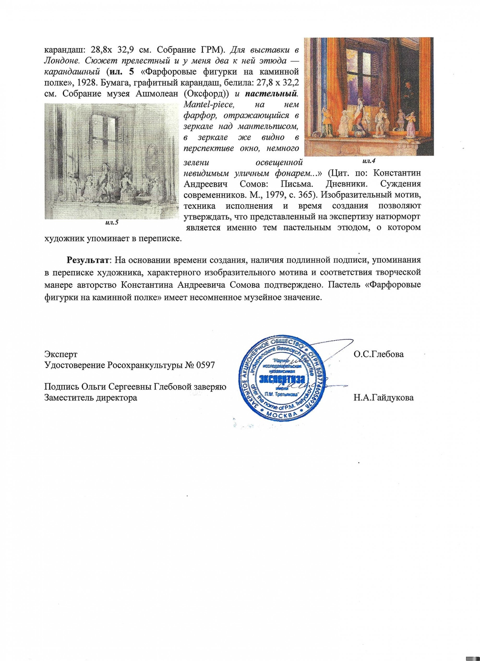 Экспертное заключение Научно-исследовательской независимой экспертизы имени П. М. Третьякова ОГ 5302 № 3044-46 от 30 сентября 2013. Эксперт: О. С. Глебова