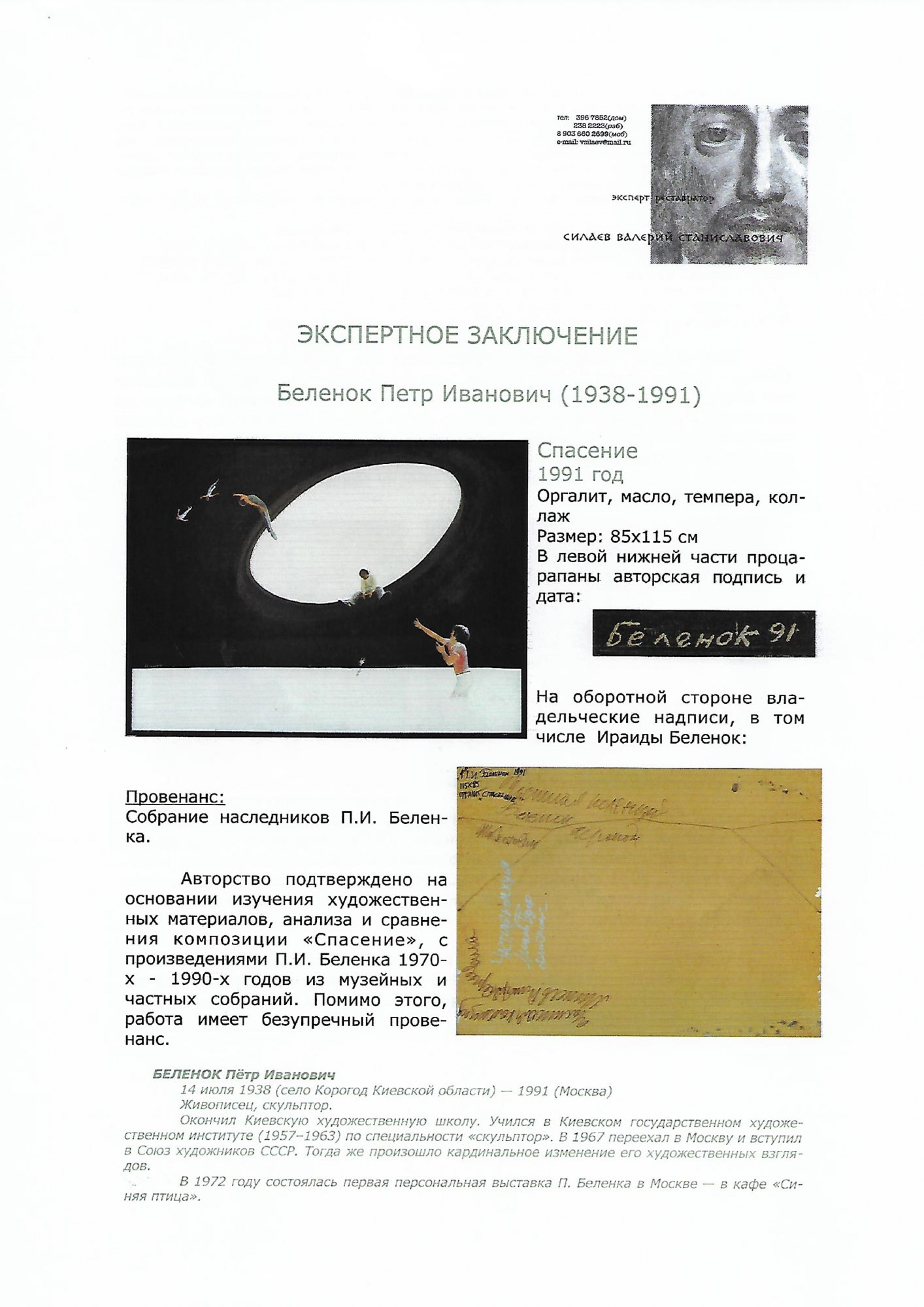 БЕЛЕНОК Пётр Иванович (1938–1991) Спасение. 1991