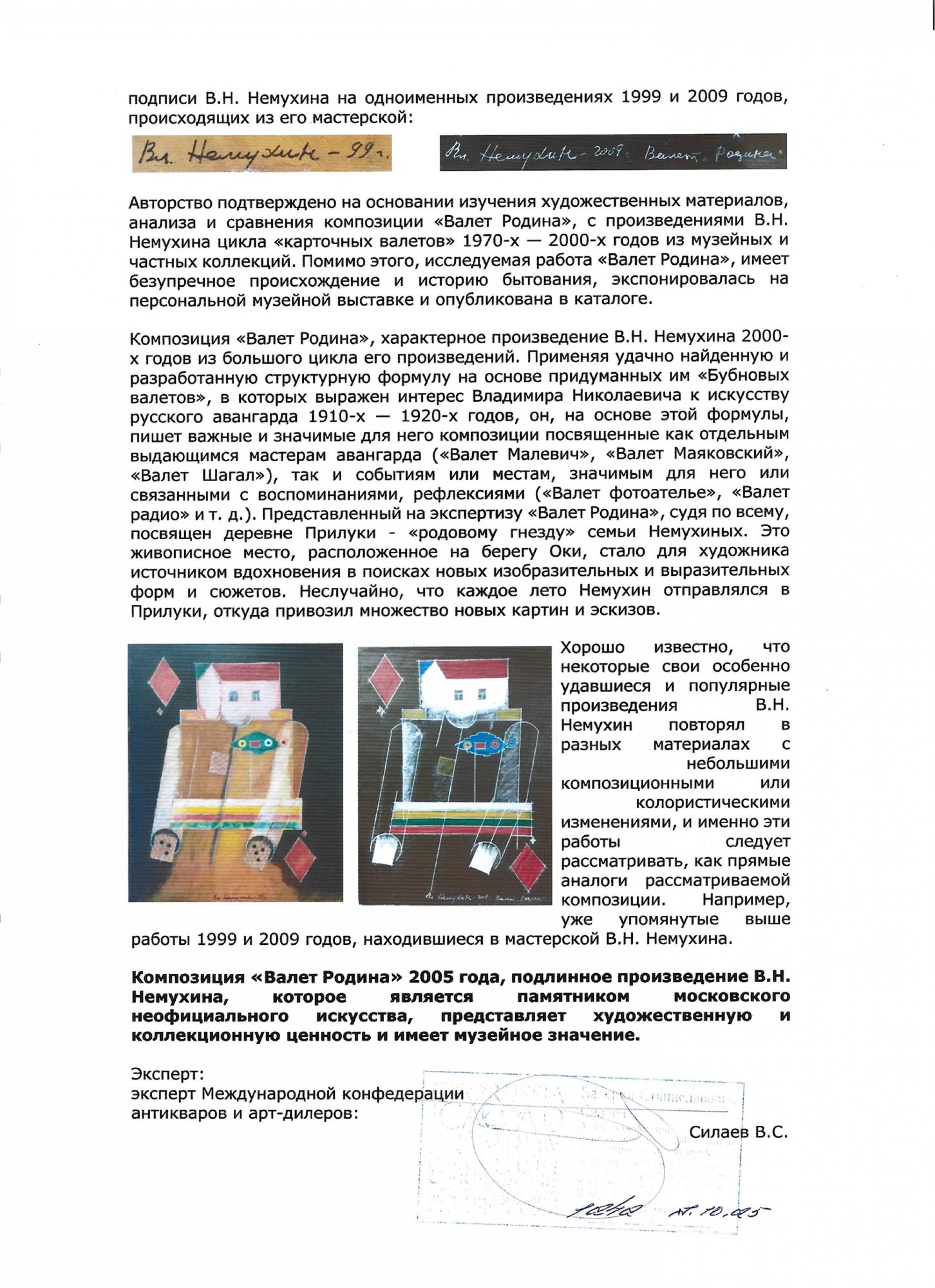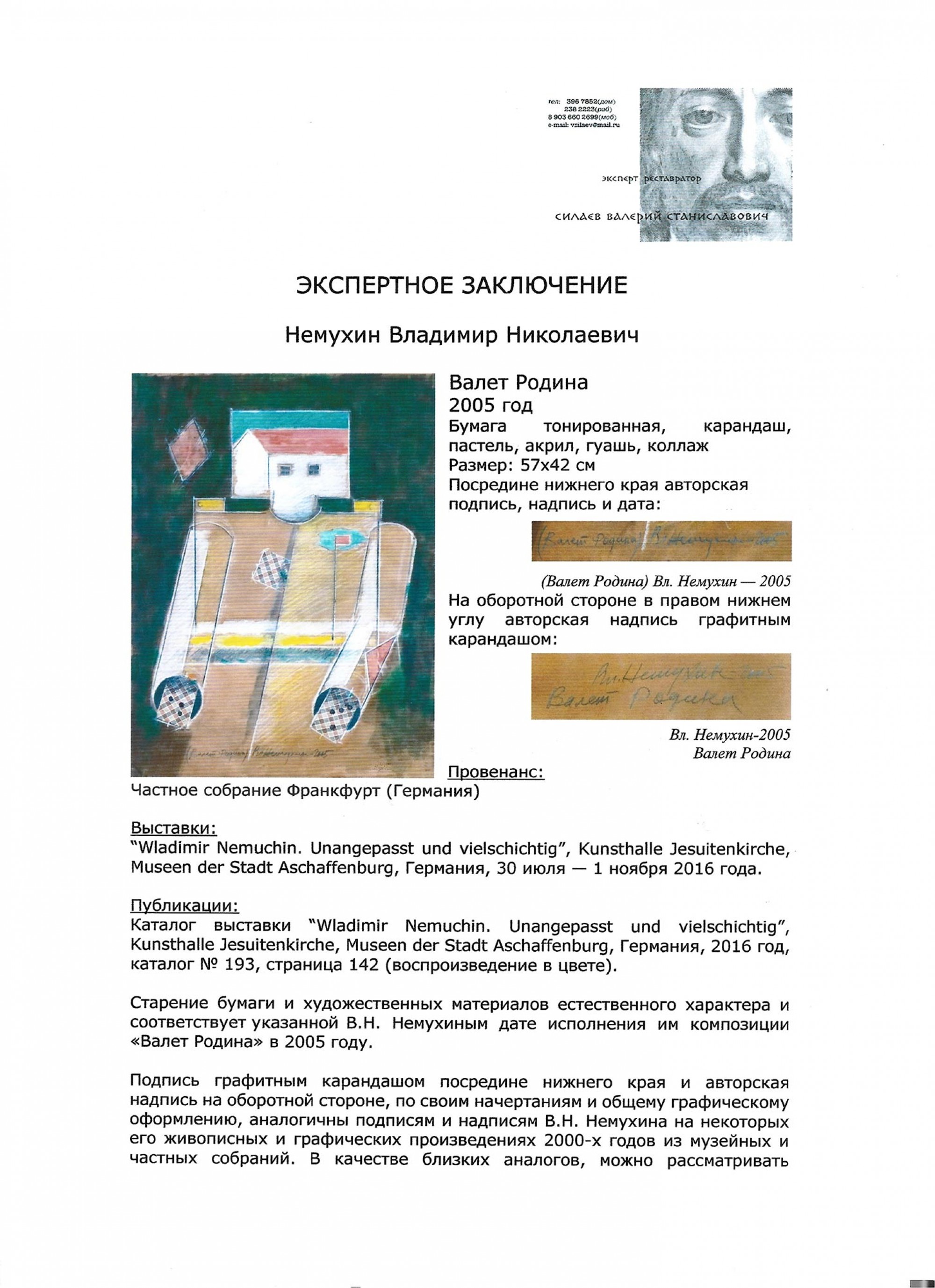 Внизу название, подпись и дата карандашом: (Валет Родина) Вл. Немухин — 2005