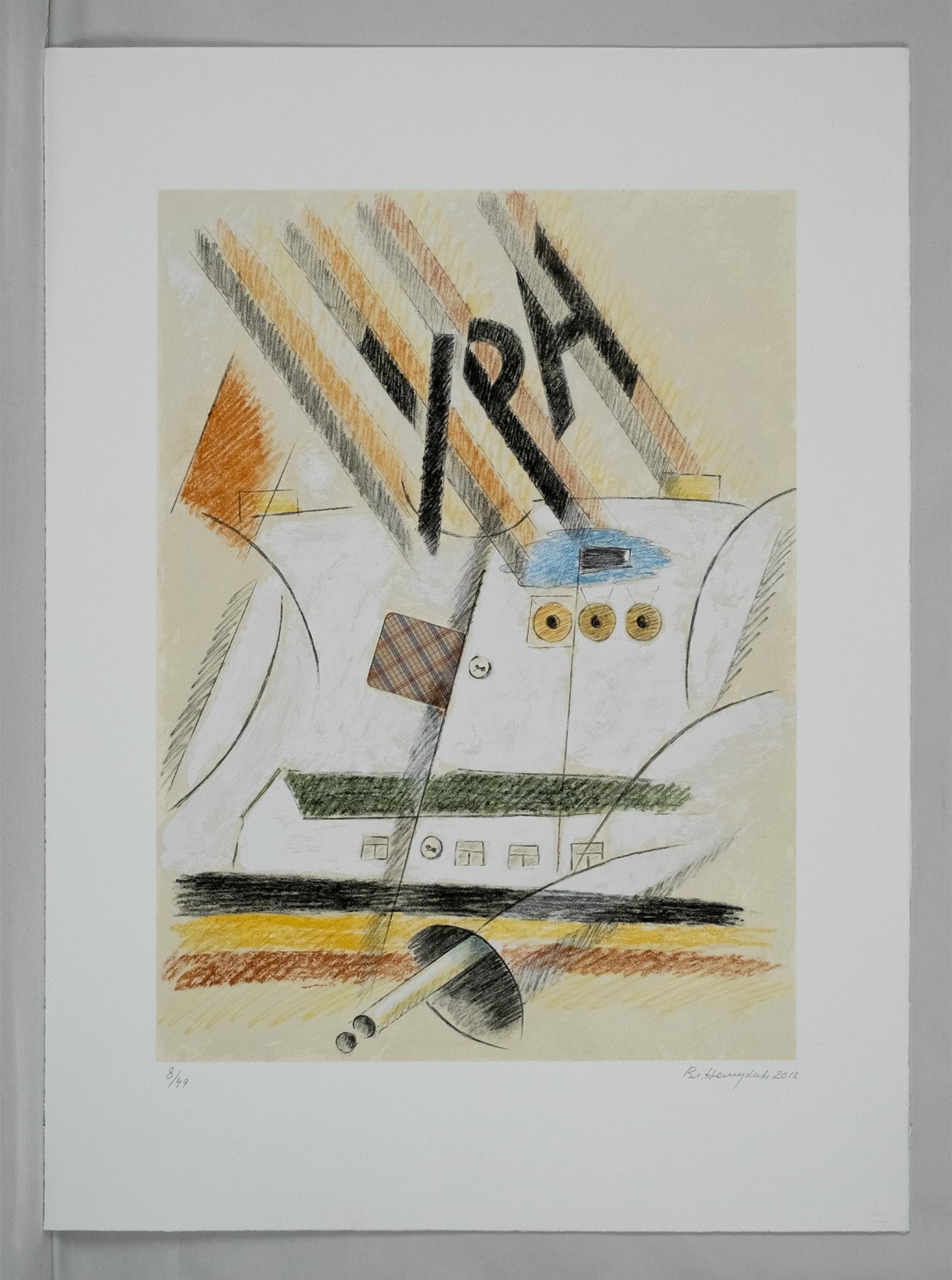 Бумага, эстамп, коллаж, специальная техника. 54 × 40 (изображение). 74 × 54 (лист). Тираж: 49 экз. Номер в тираже: 8 из 49
