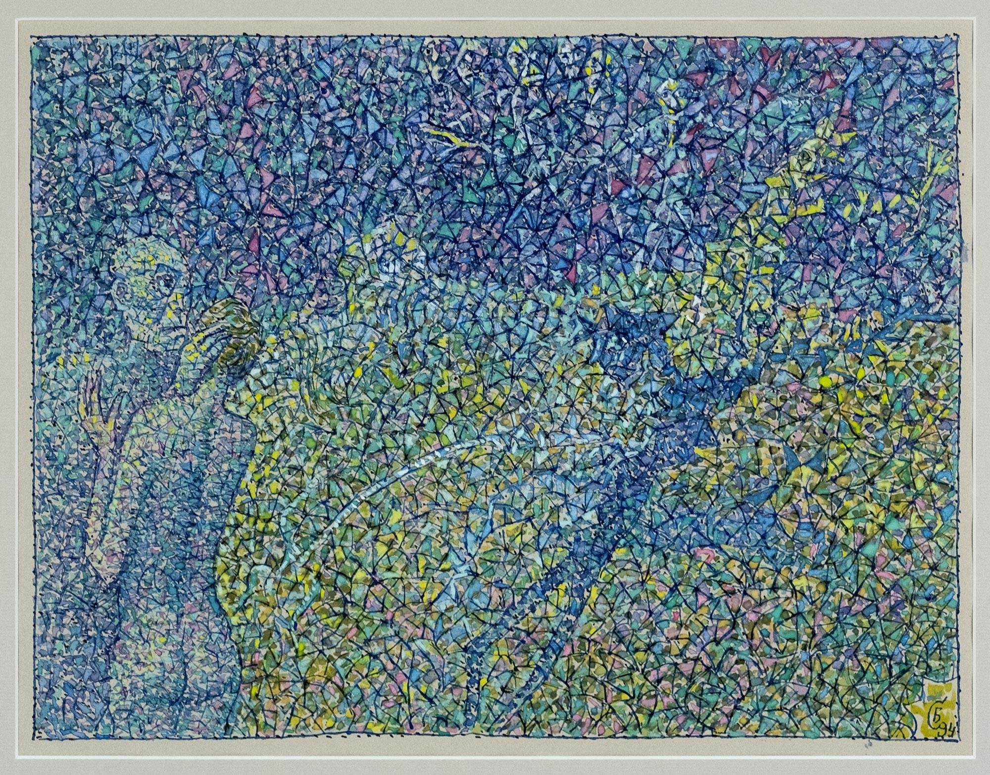 Работа оформлена в паспарту в раме под стеклом. Размер в раме: 42 × 49