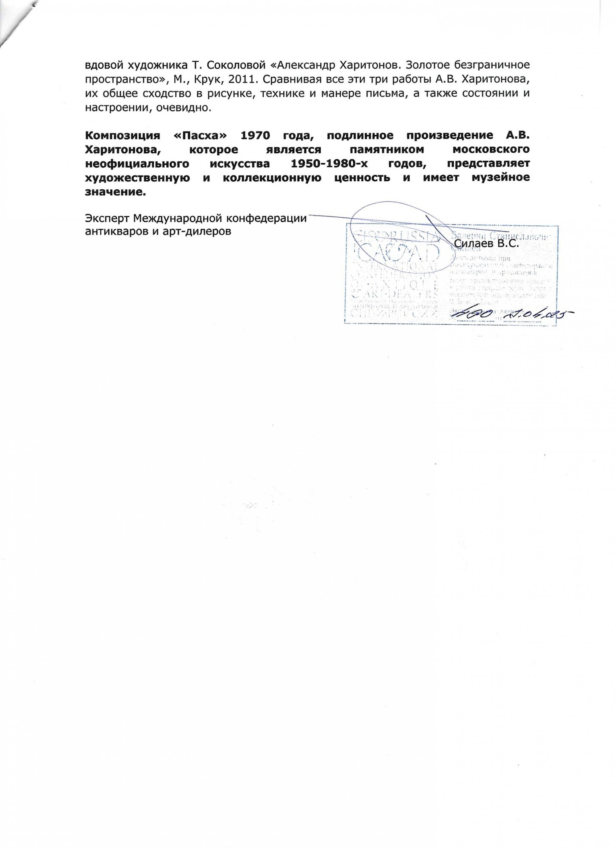 На обороте авторская надпись: Харитонов А. В. / 1970 г. / «Пасха»