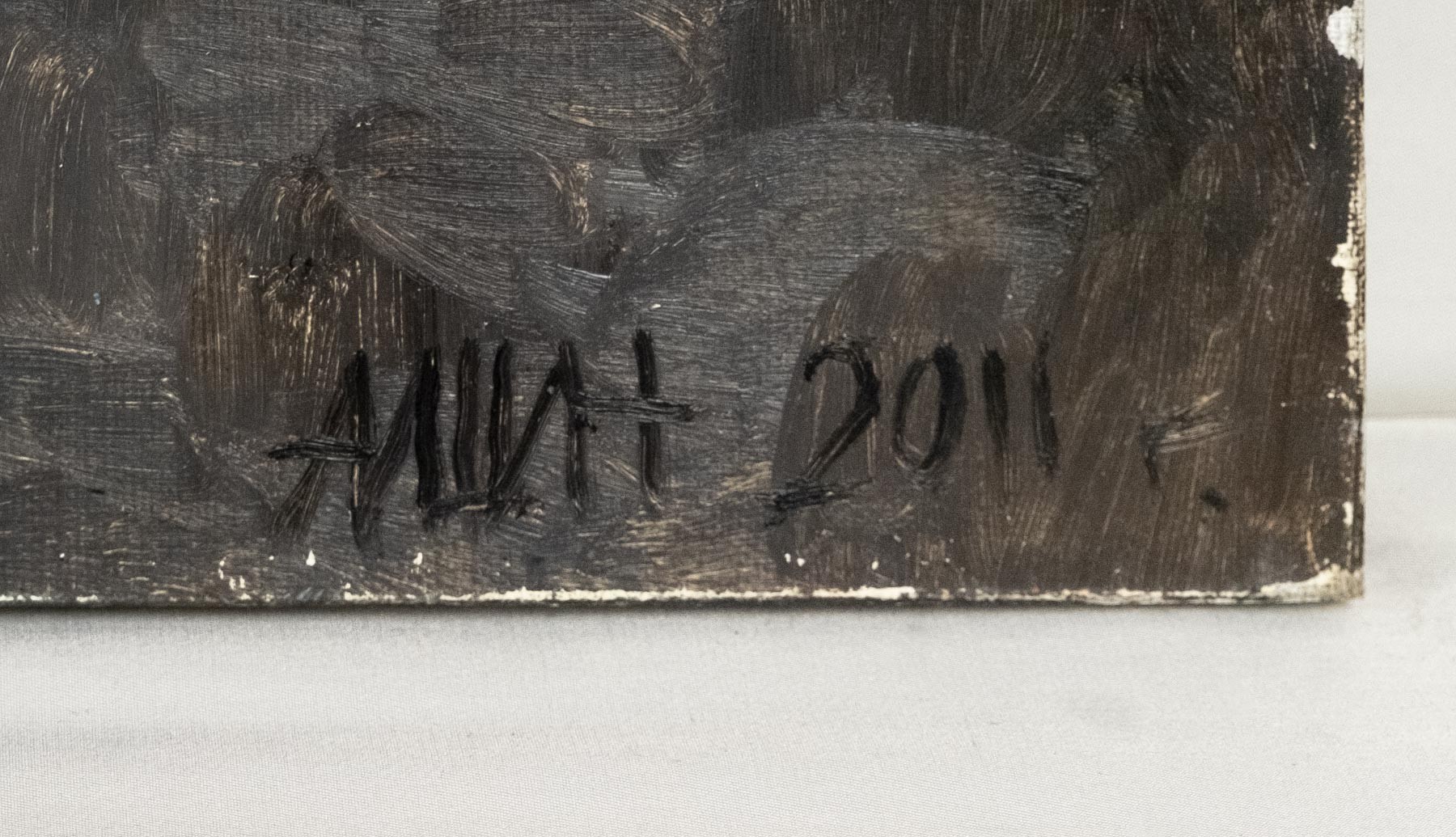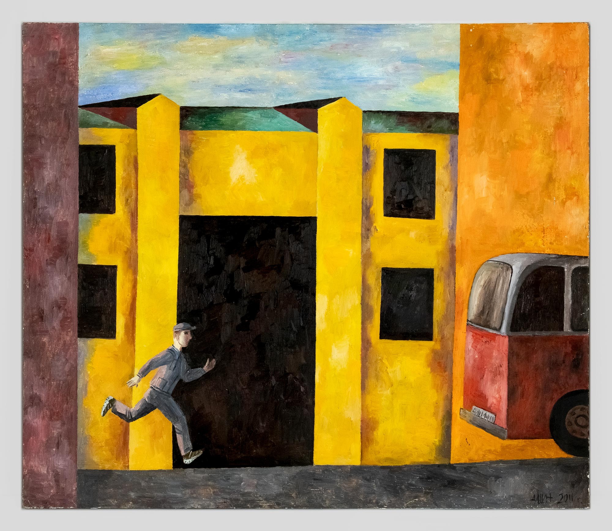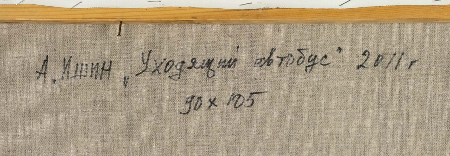 На обороте надпись: А. Ишин «Уходящий автобус» 2011 г. / 90 × 105