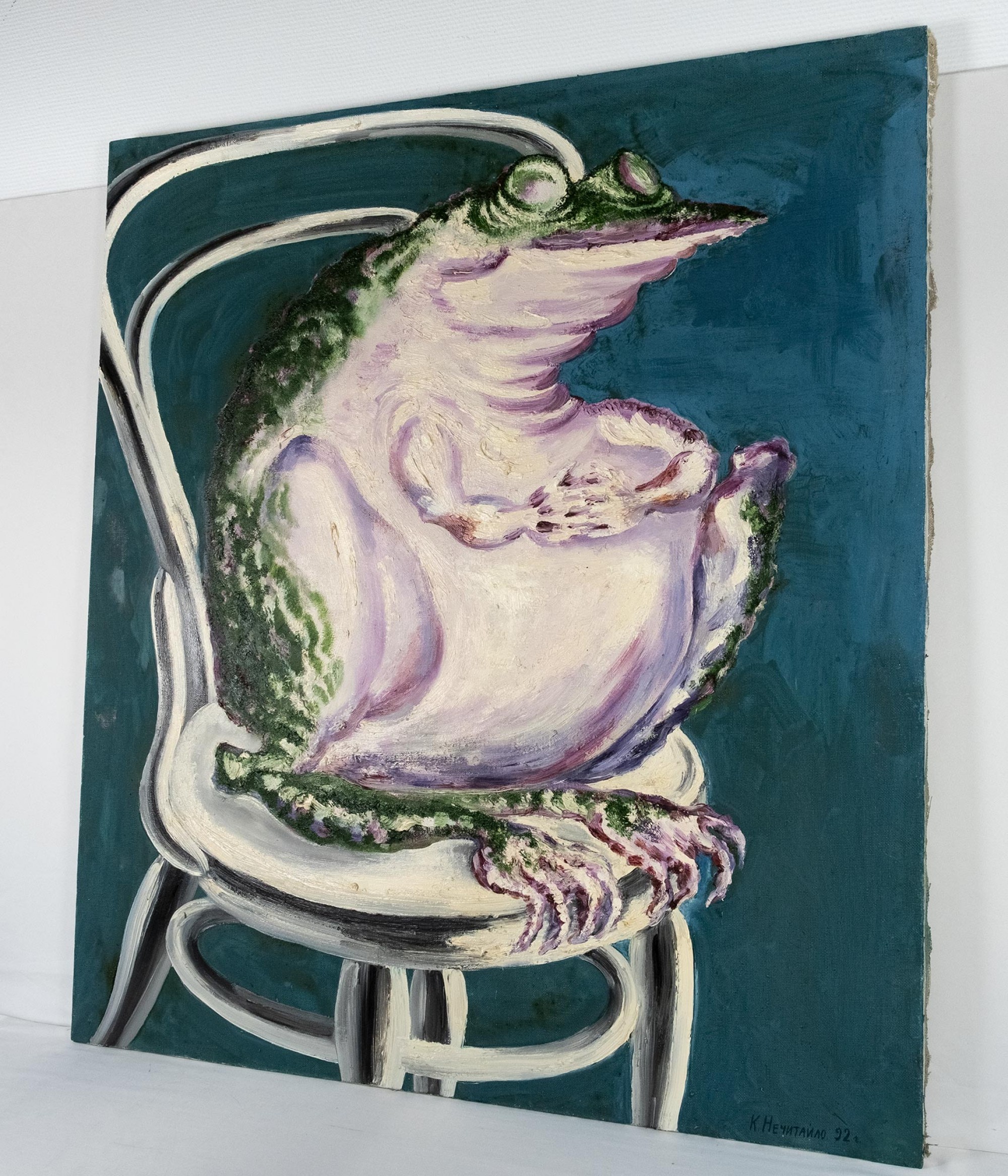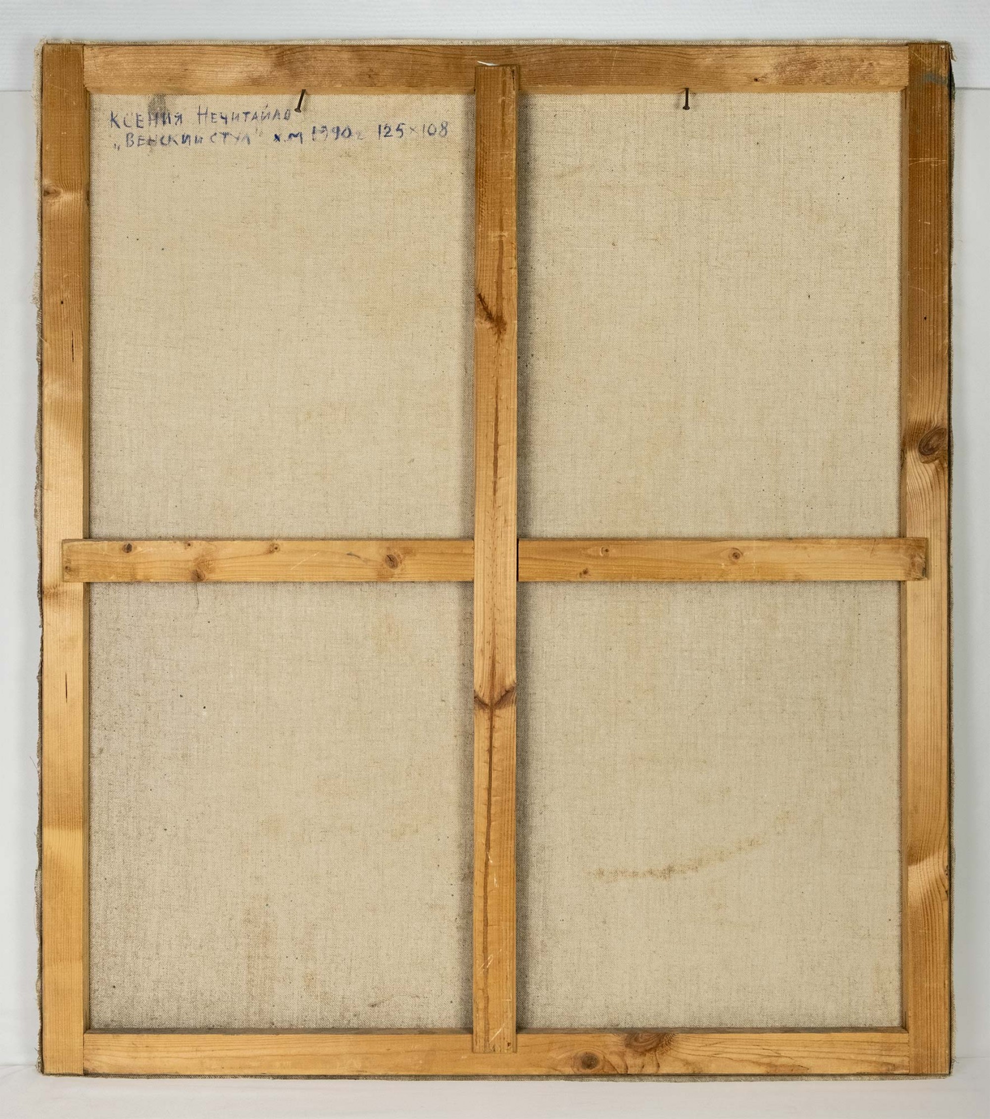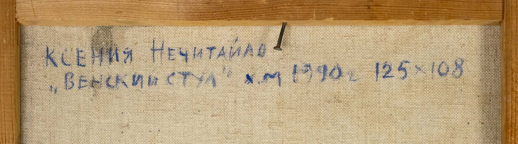 На обороте надпись: Ксения Нечитайло / «Венский стул» х. м. 1990 г. 125 × 108