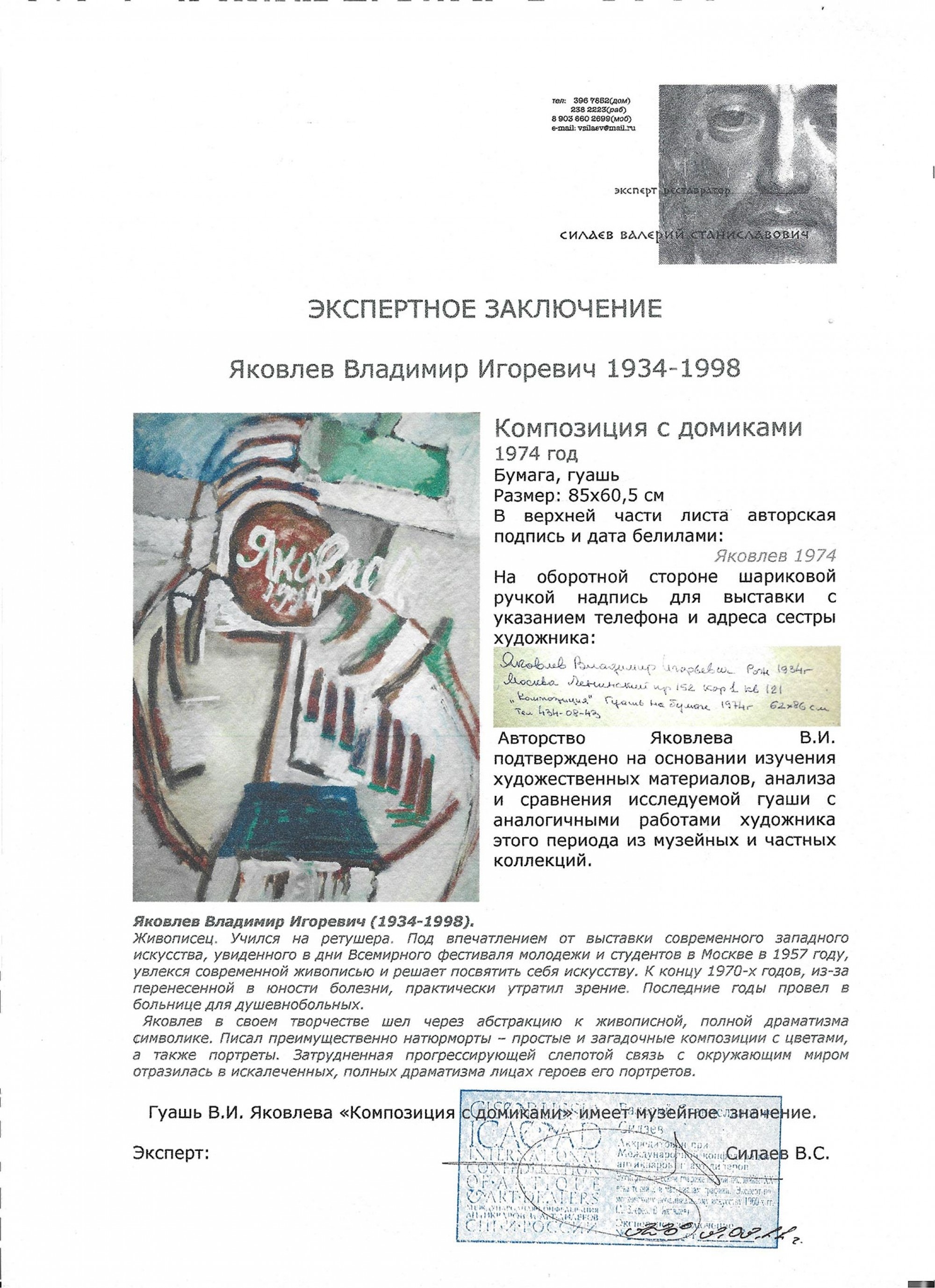 ЯКОВЛЕВ Владимир Игоревич (1934–1998) Композиция с домиками. 1974