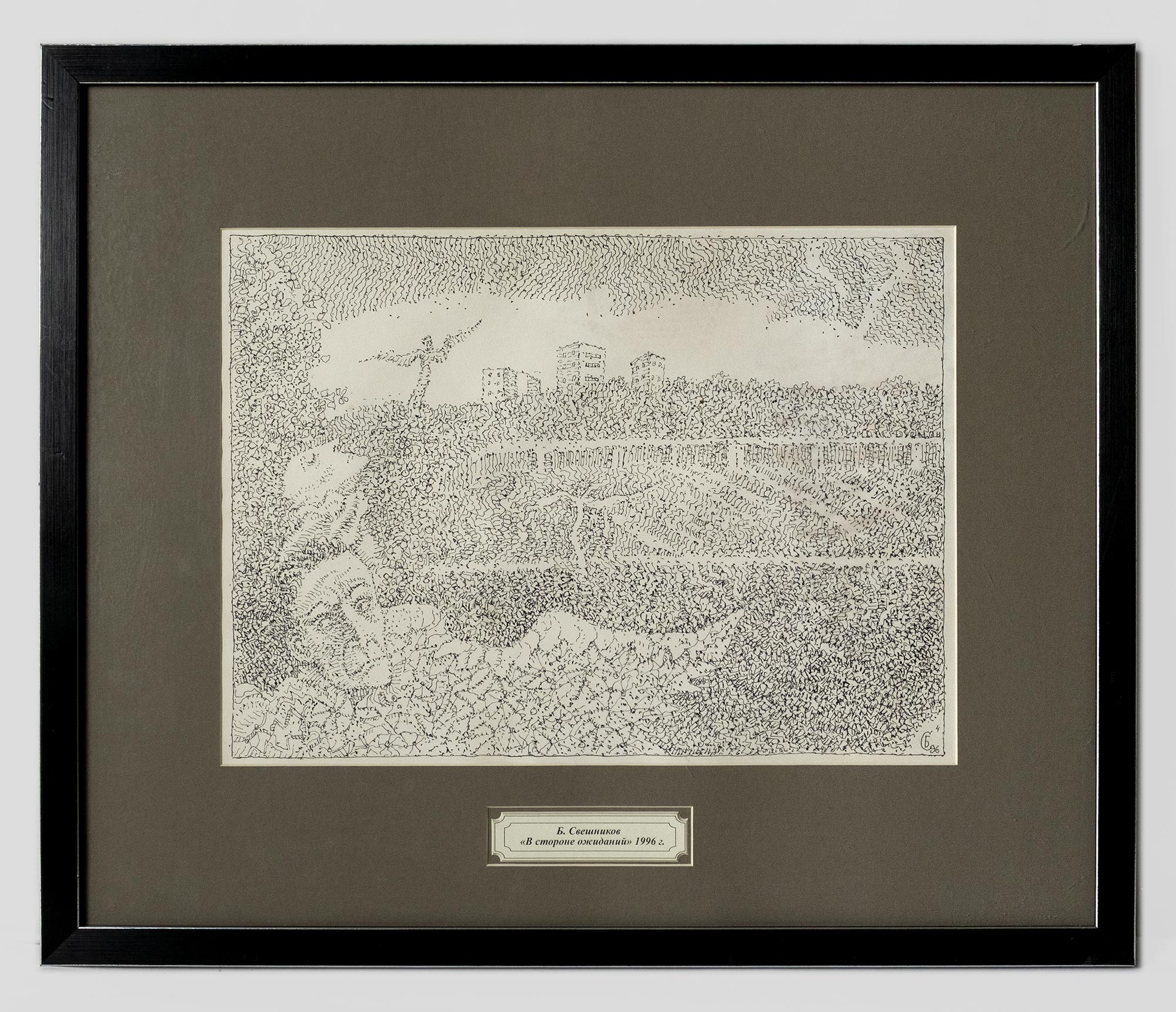 Работа оформлена в паспарту в раме под стеклом. Размер в раме: 46,5 × 55