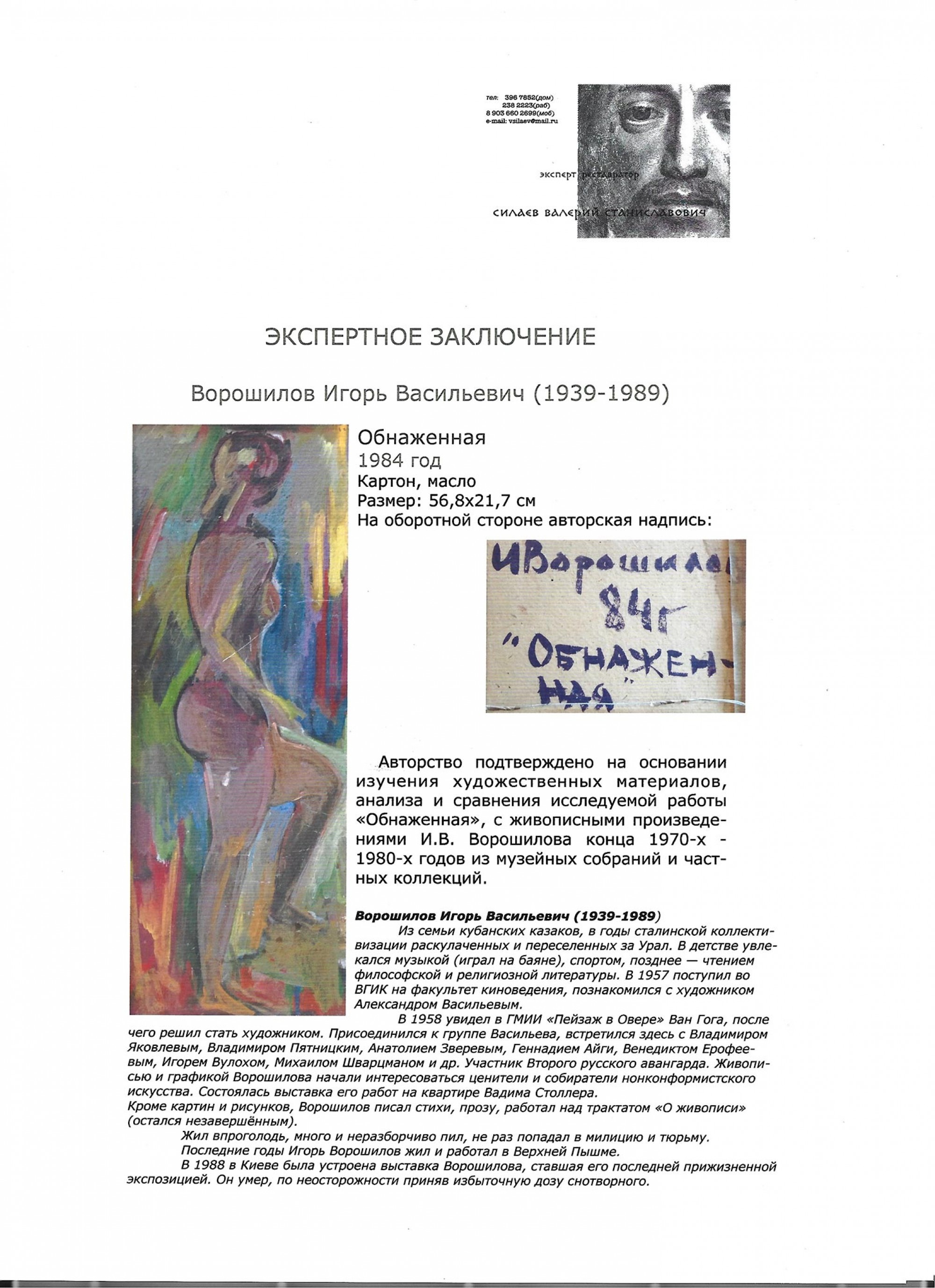 На обороте подпись, дата и название: ИВорошилов / 84 г / «Обнаженная»