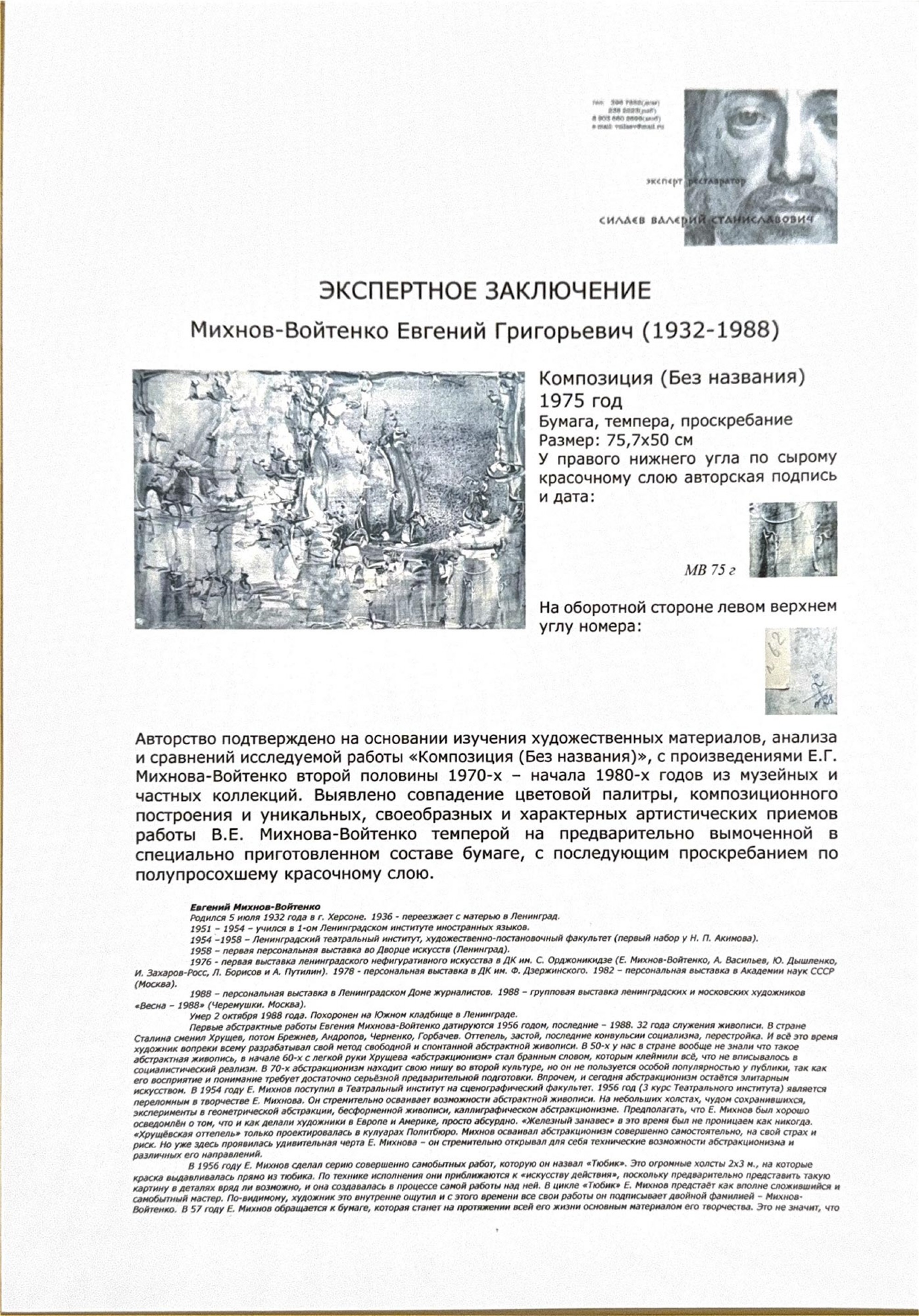 МИХНОВ-ВОЙТЕНКО Евгений Григорьевич (1932–1988) Композиция (Без названия). 1975