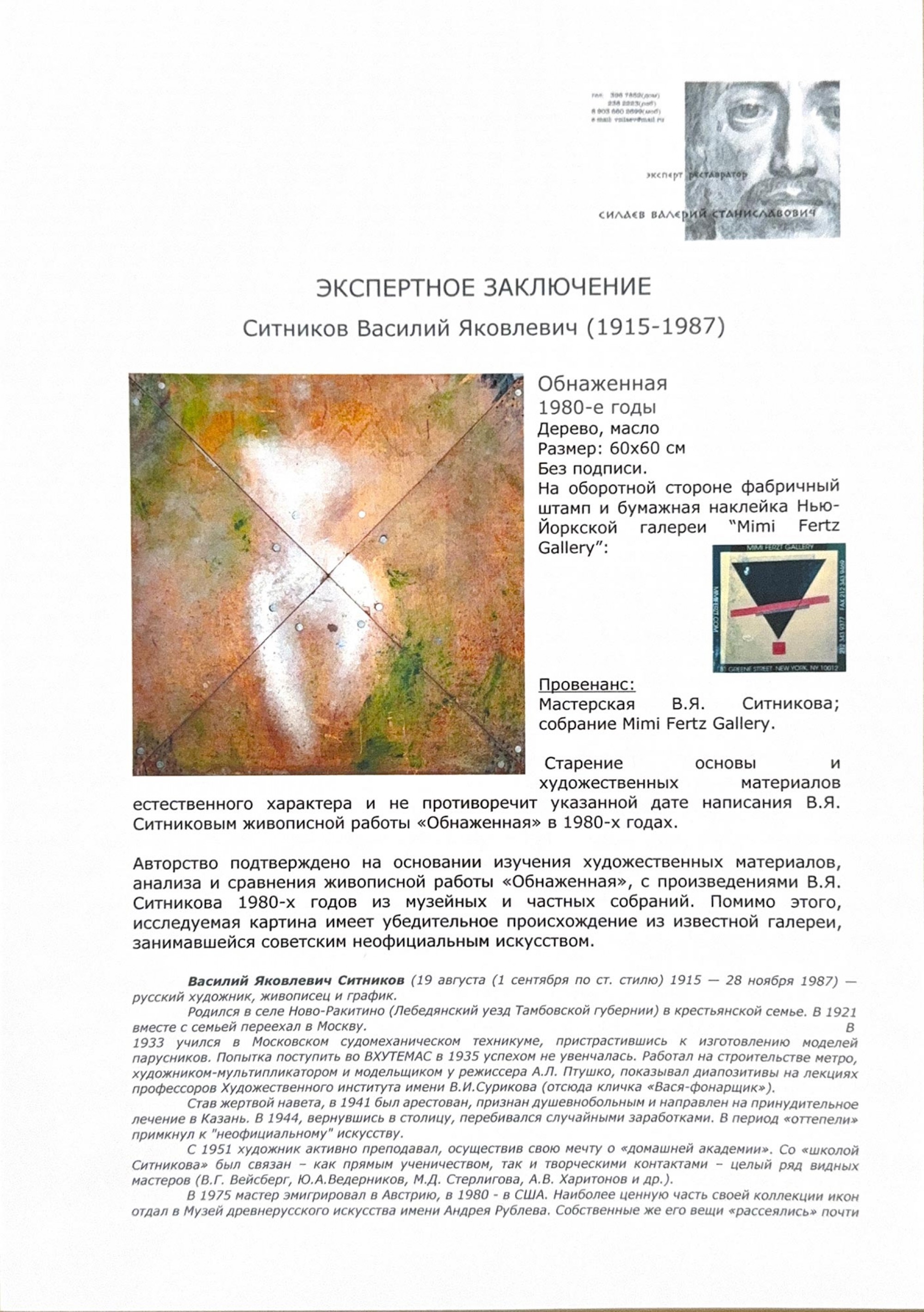 СИТНИКОВ Василий Яковлевич (1915–1987) Обнаженная. 1980‑е ID лота: 113257