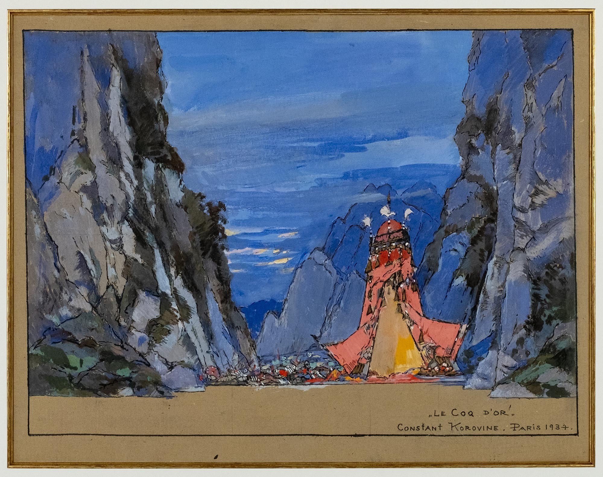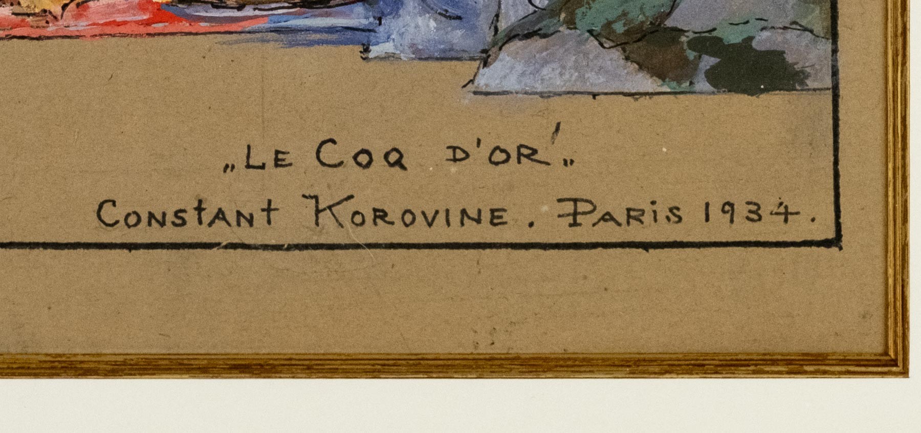 В правом нижнем углу название, подпись и дата: «Le Coq d'Or» / Constant Korovine. Paris 1934.