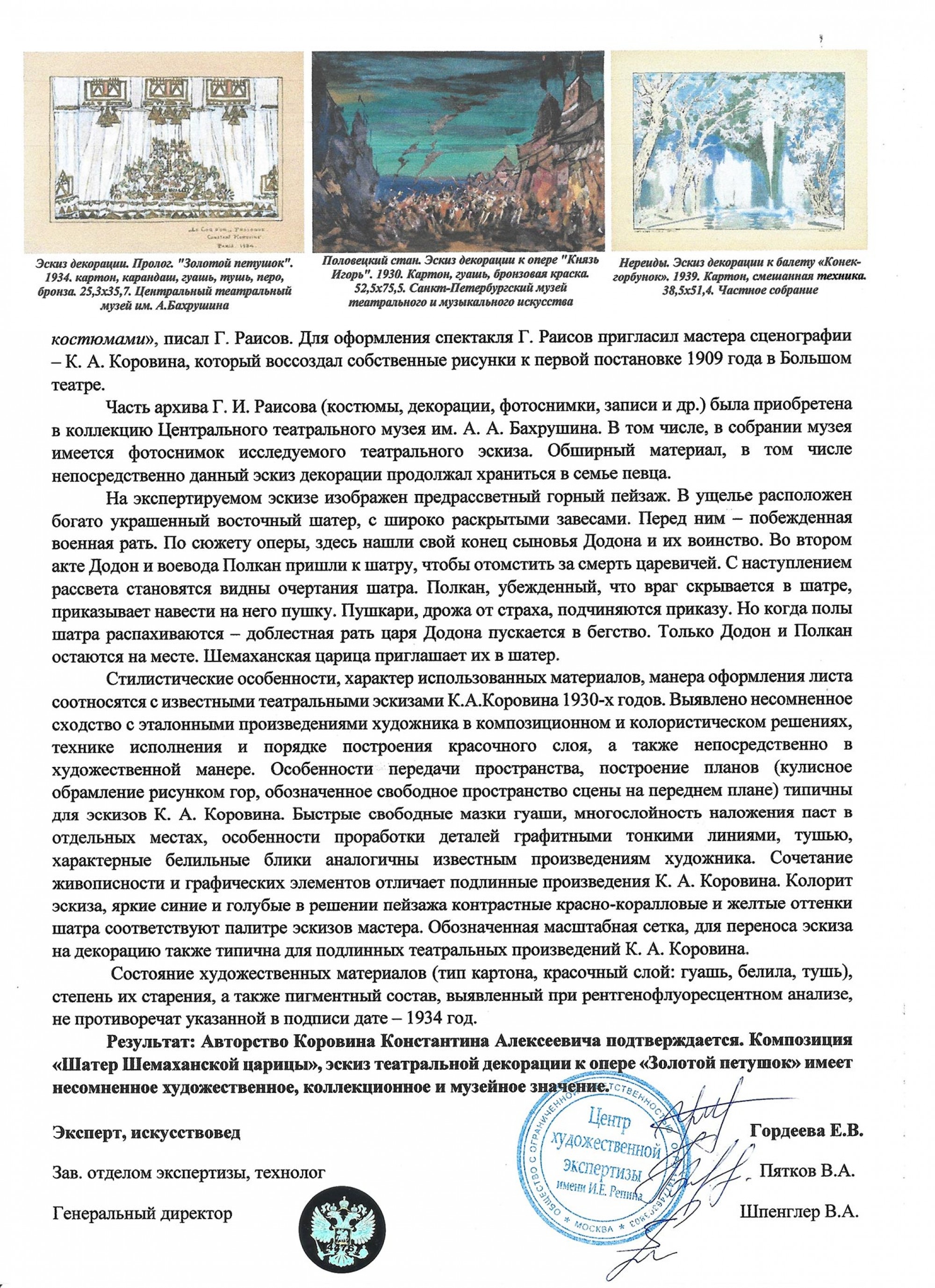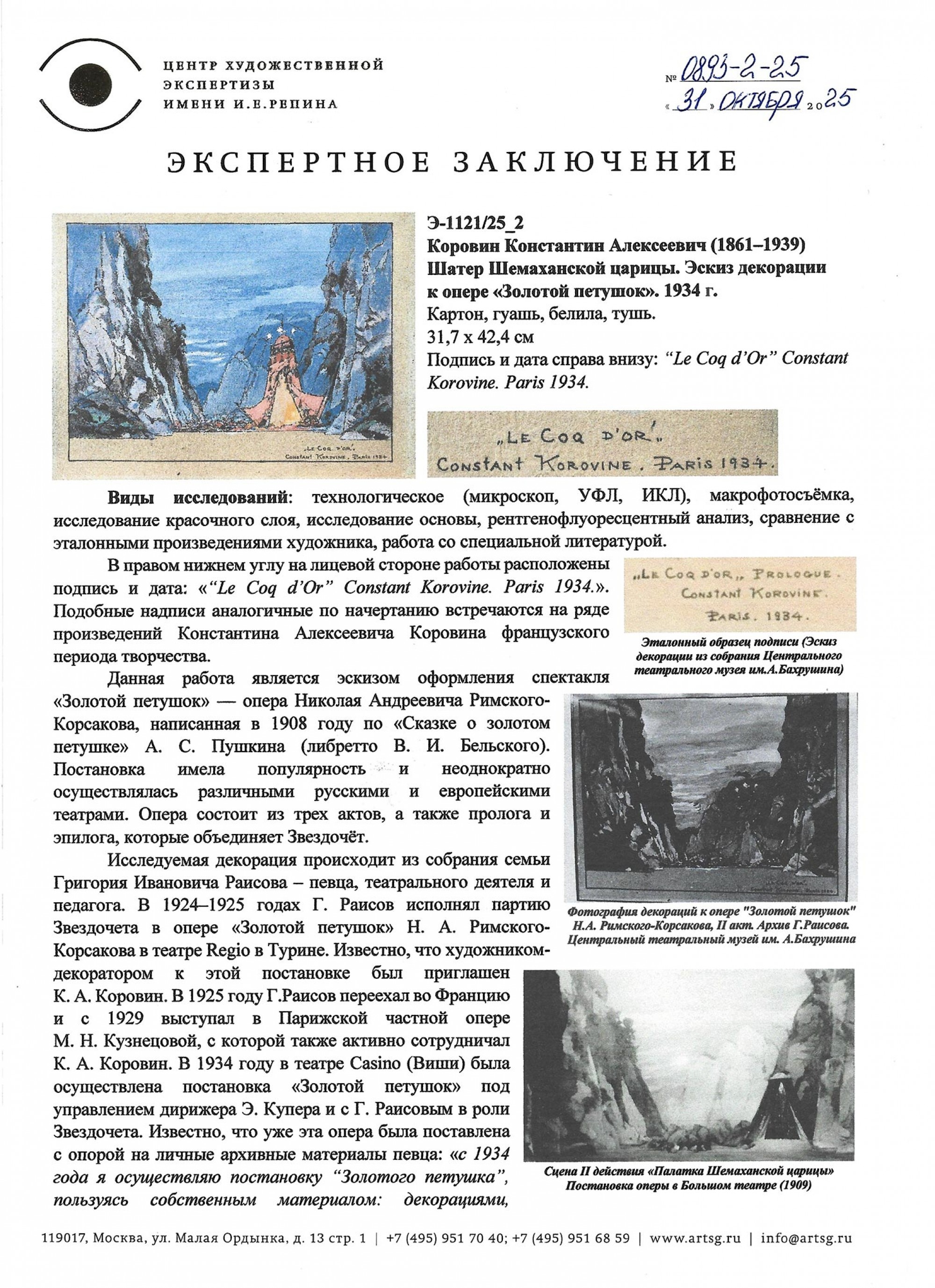 Экспертное заключение Центра художественной экспертизы имени И. Е. Репина Э-1121/25_2 № 0893-2-25 от 31 октября 2025 г. Эксперт: Е. В. Гордеева