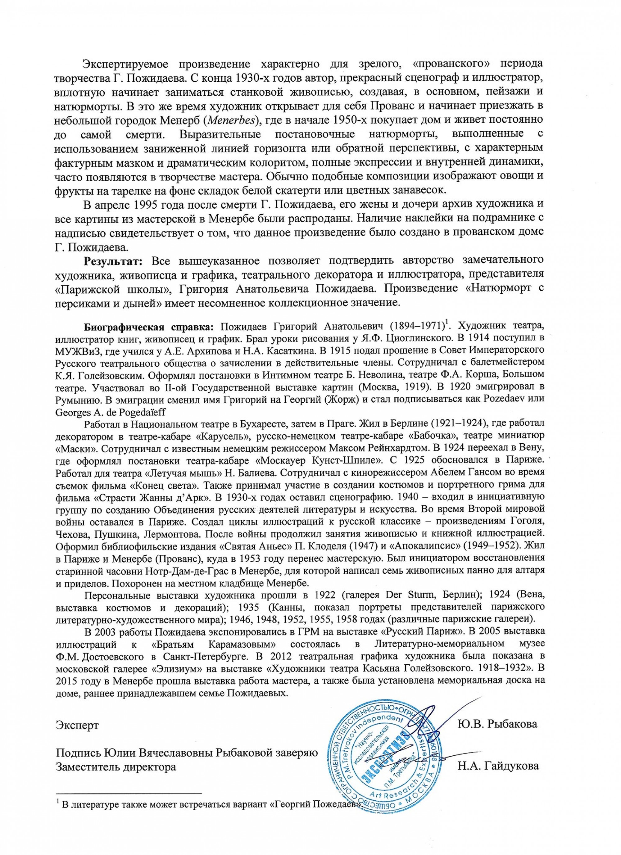 ПОЖИДАЕВ Григорий Анатольевич (1894–1971) Натюрморт с персиками и дыней. 1964