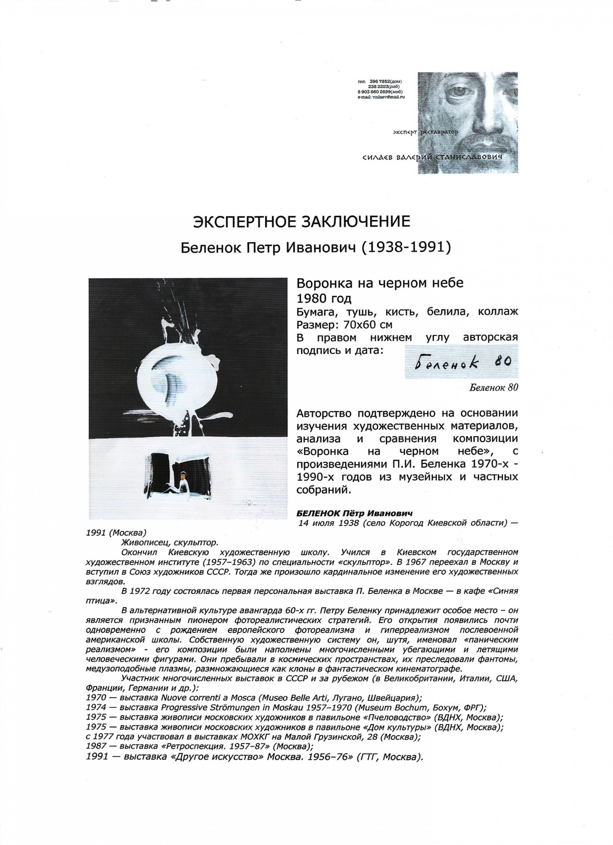 БЕЛЕНОК Пётр Иванович (1938–1991) Воронка на черном небе. 1980 ID лота: 113285