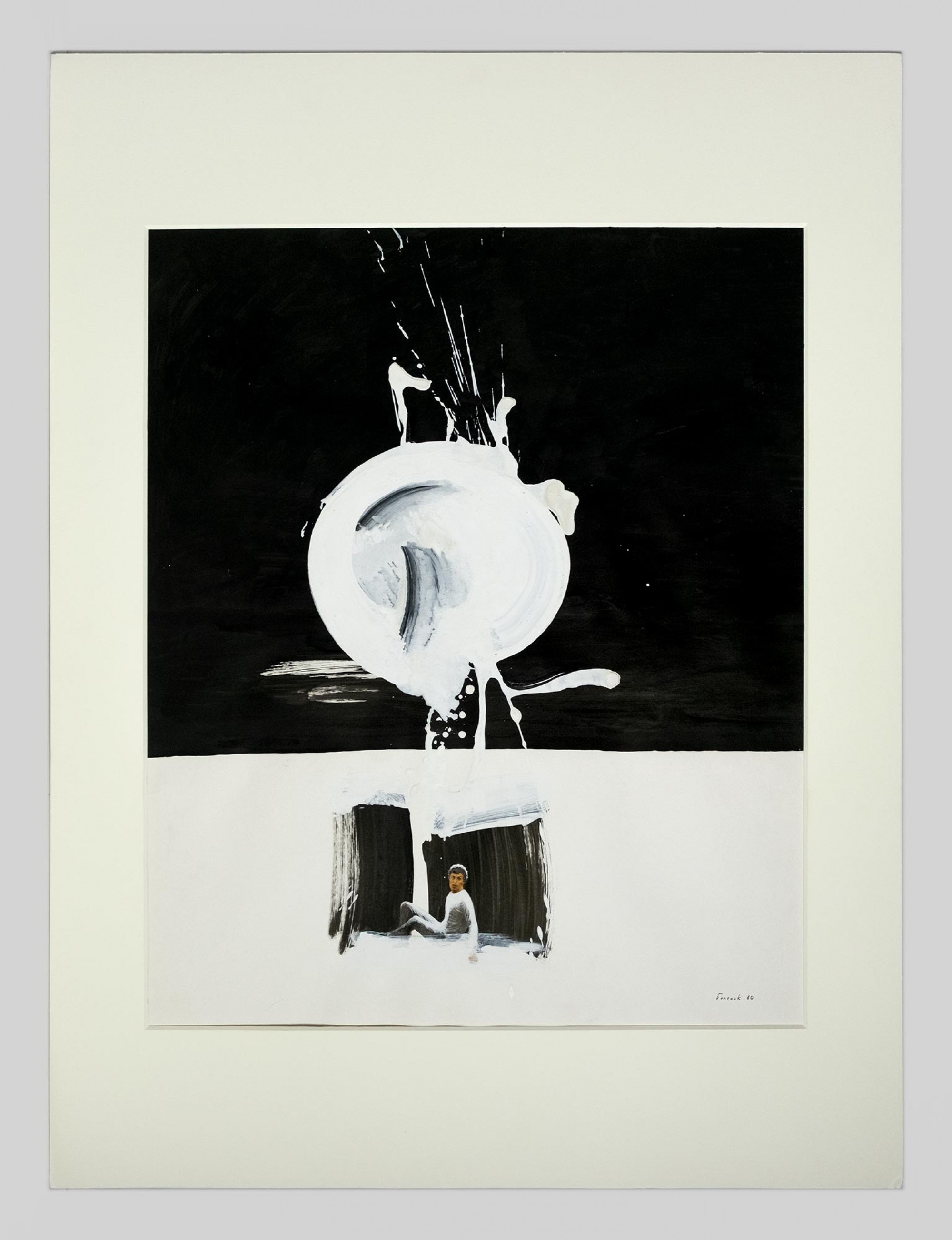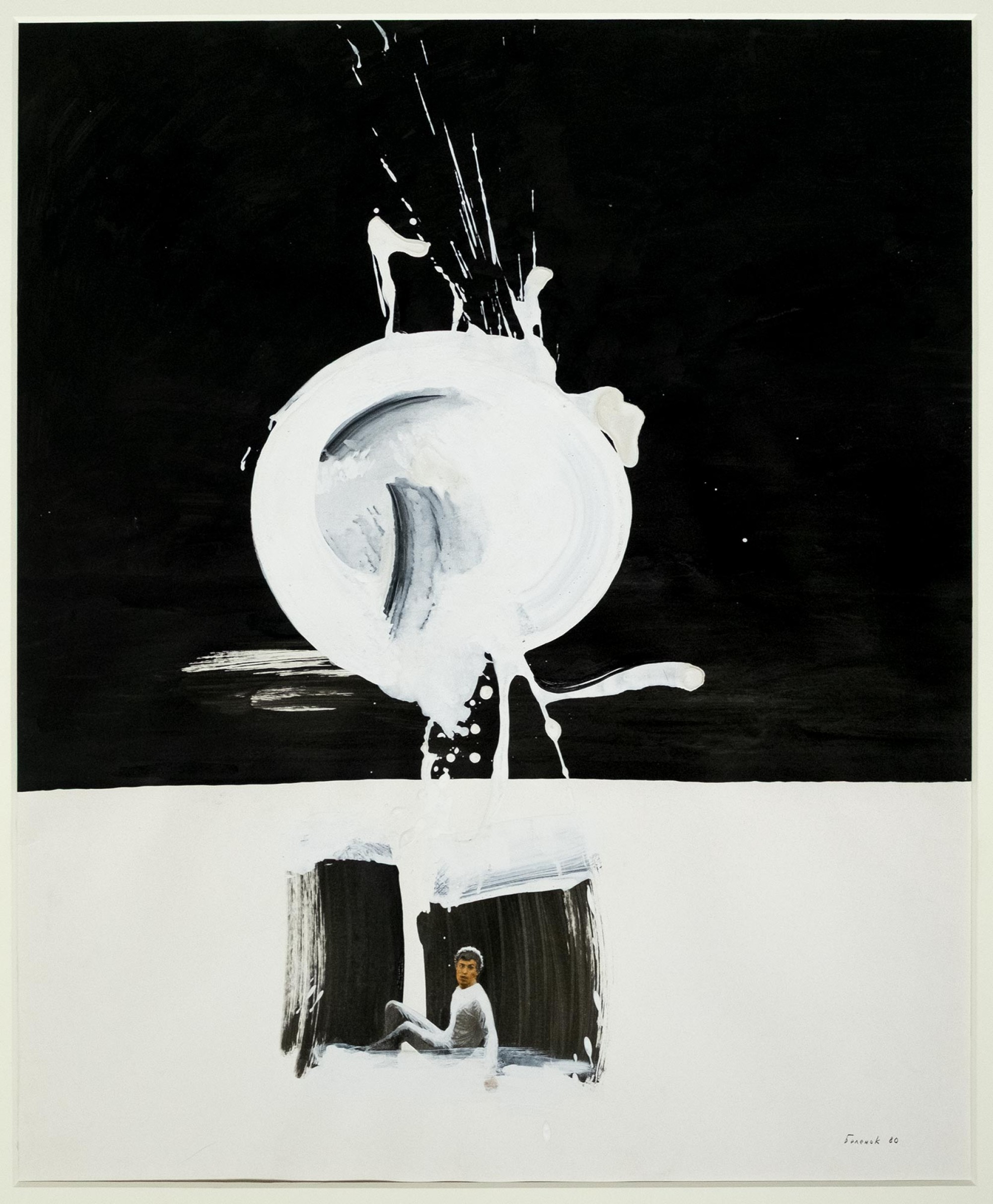 Бумага, тушь, кисть, белила, коллаж. 70 × 60