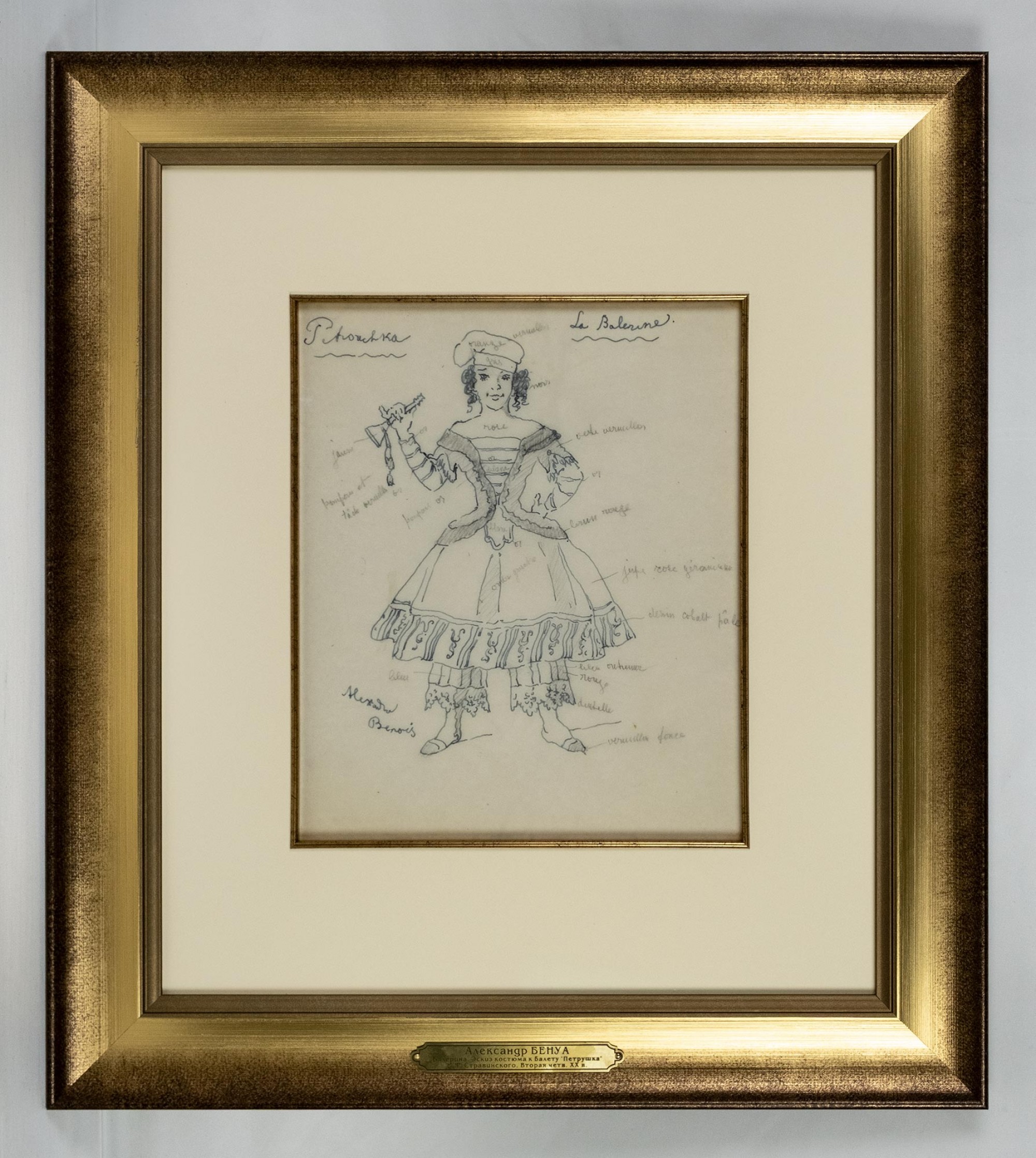 БЕНУА Александр Николаевич (1870–1960) Балерина. Эскиз костюма для постановки балета И. Ф. Стравинского «Петрушка». Вторая четверть ХХ века