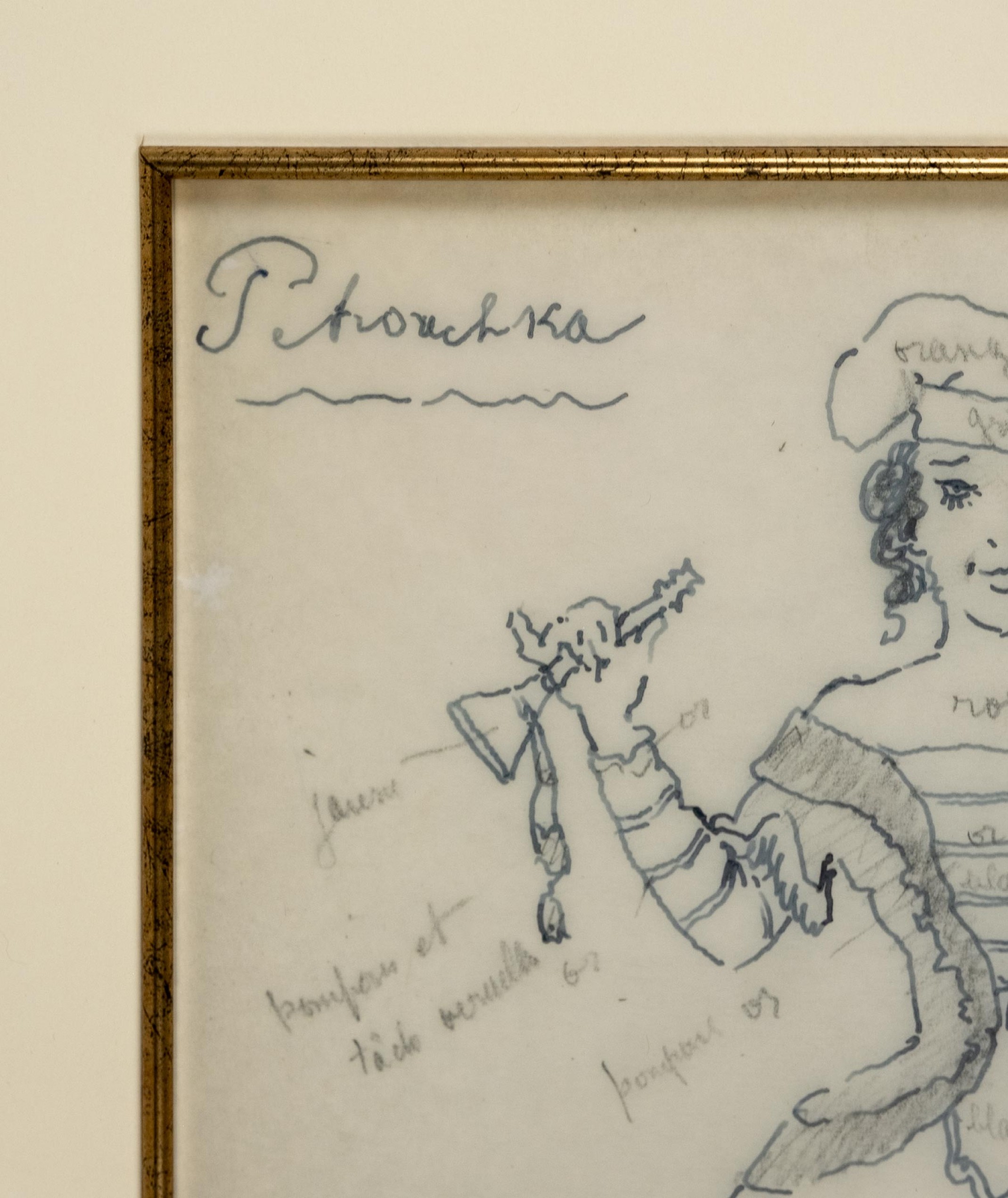 В левом и правом верхнем углах надписи соответственно: Petrouchka и Le Balerine