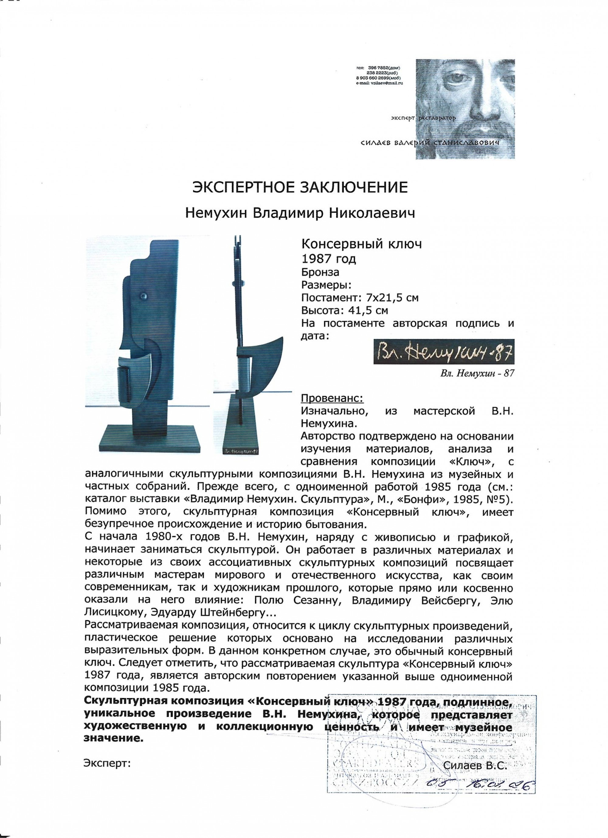 НЕМУХИН Владимир Николаевич (1925–2016) Консервный ключ. 1987