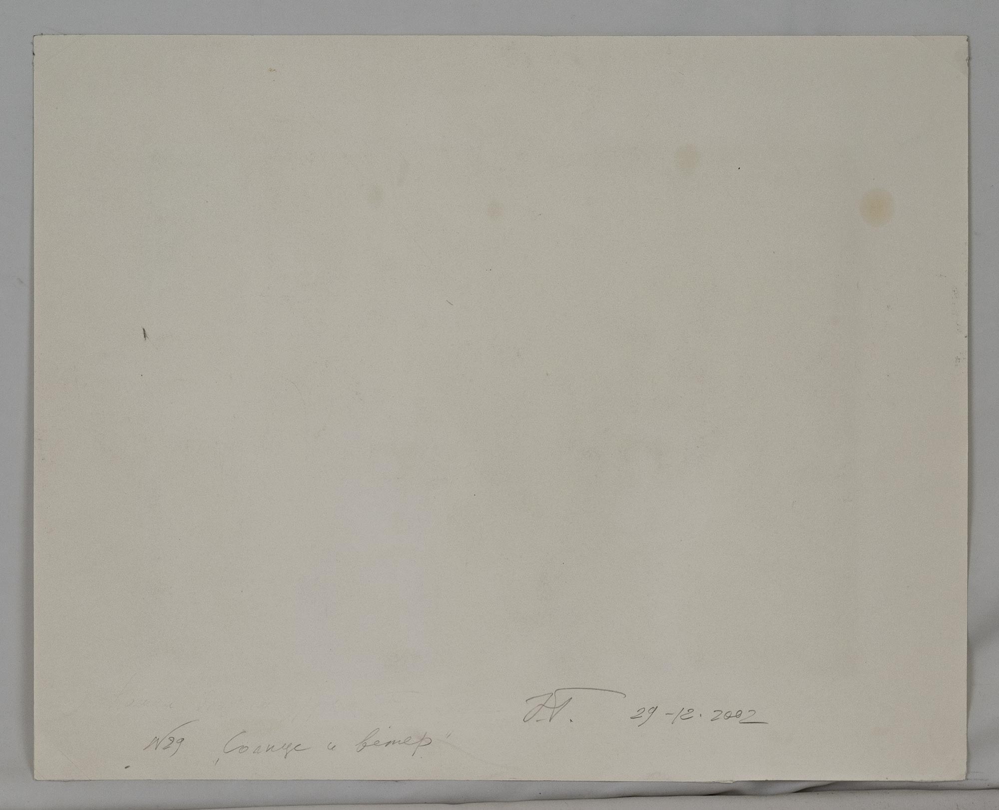 На обороте — часть дарственной надписи с названием, подписью и датой: № 29 «Солнце и ветер» Э.Г. 29–12.2002