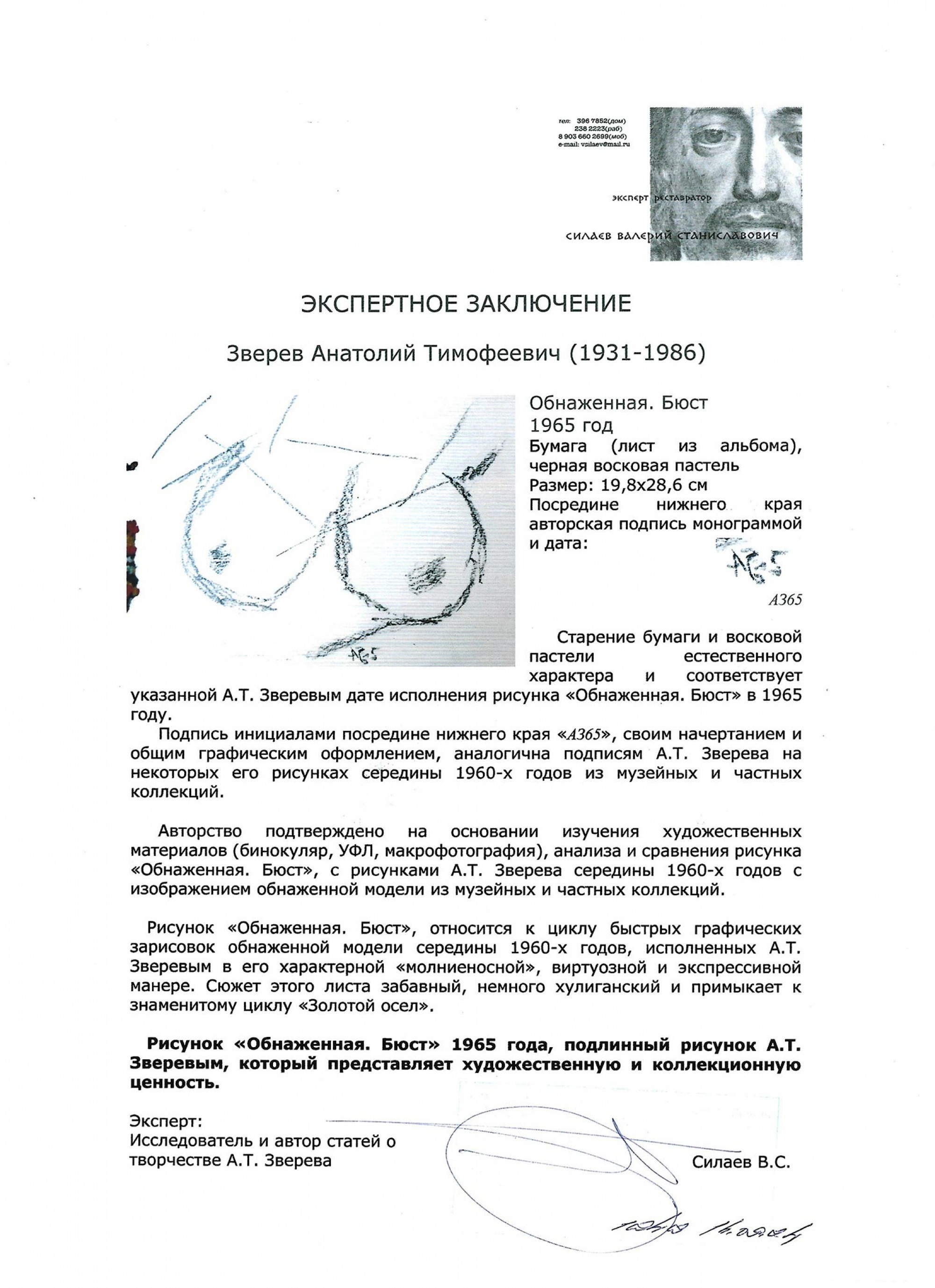 ЗВЕРЕВ Анатолий Тимофеевич (1931–1986) Обнаженная. Бюст. 1965