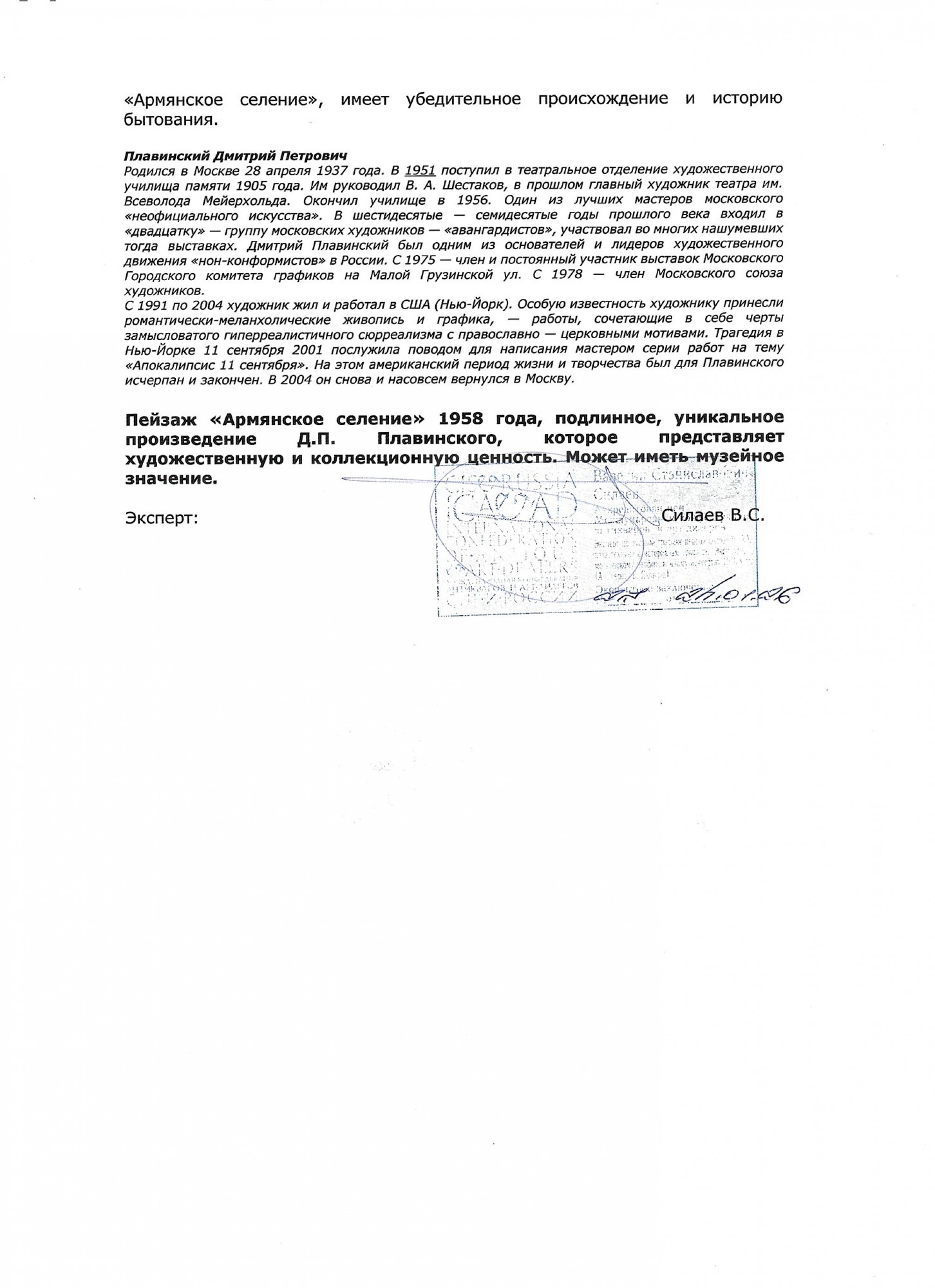 ПЛАВИНСКИЙ Дмитрий Петрович (1937–2012) Армянское селение. 1958