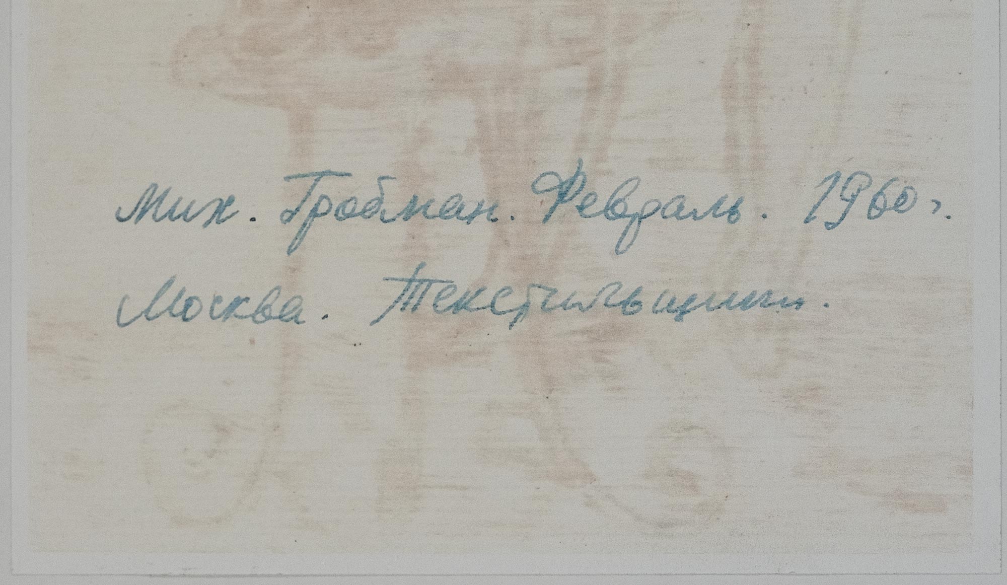 Оборот скрыт. На техничке — фотокопия оборота с авторской (?) надписью: Мих. Гробман. Февраль. 1960 г. Москва. Текстильщики