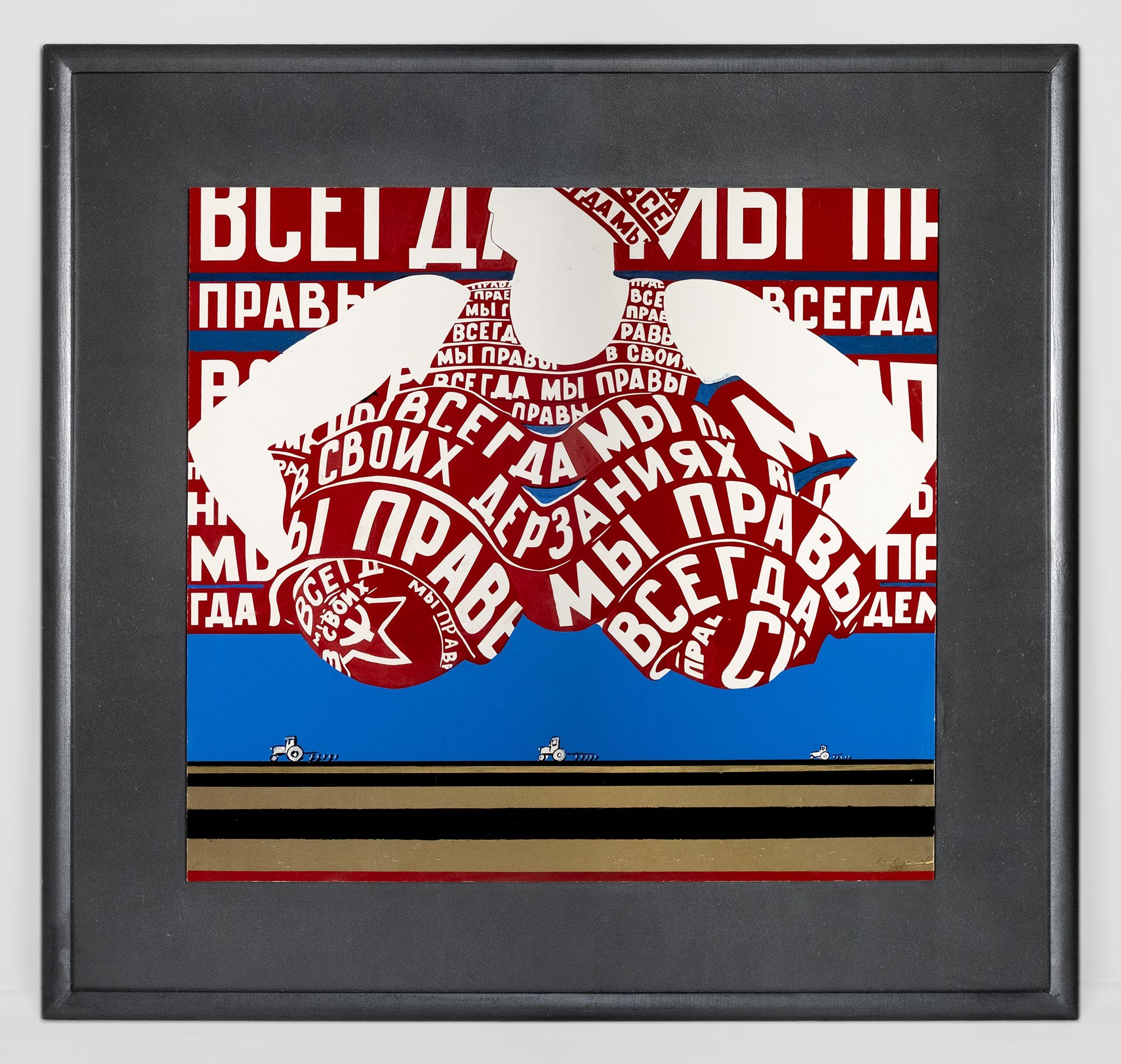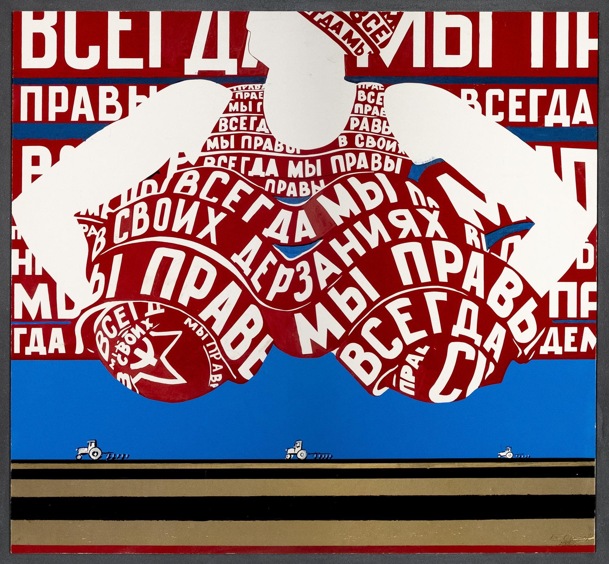 Картон на оргалите, бумага, шелкография, эмалевые краски, см. т. 49,5 × 53 (картон). 60 × 70 (оргалит)