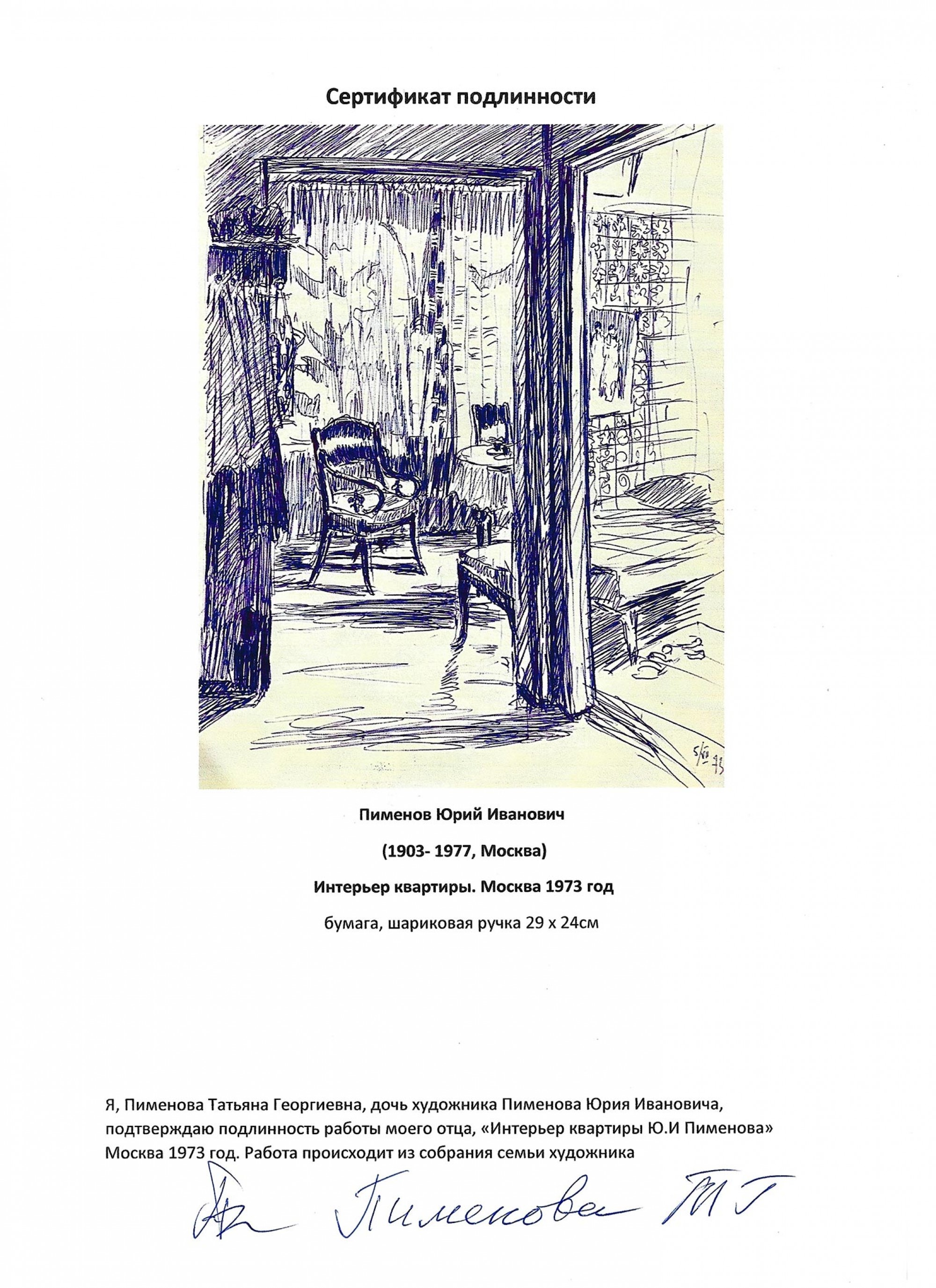 Подтверждение подлинности от Татьяны Пименовой, дочери Ю. И. Пименова