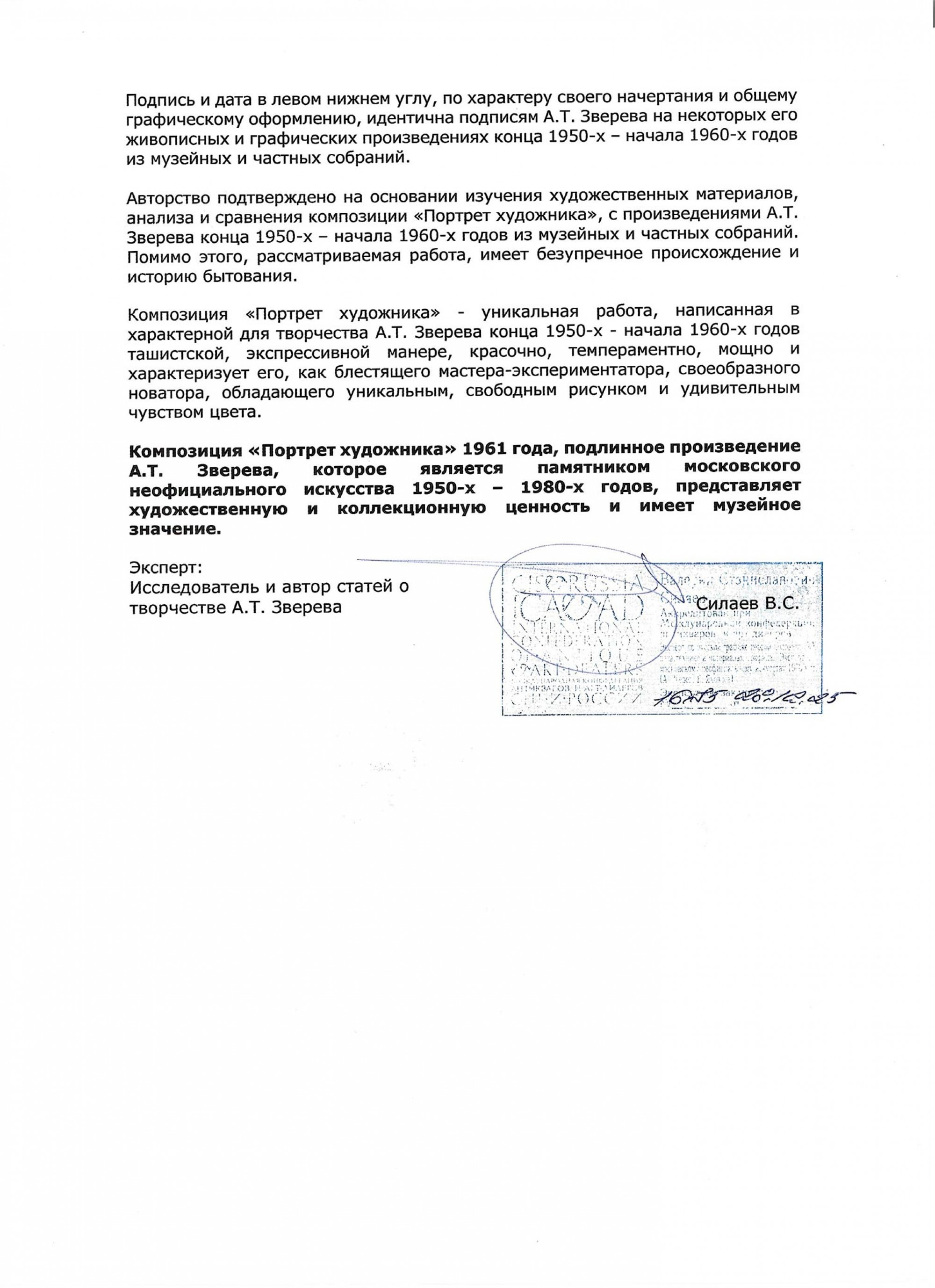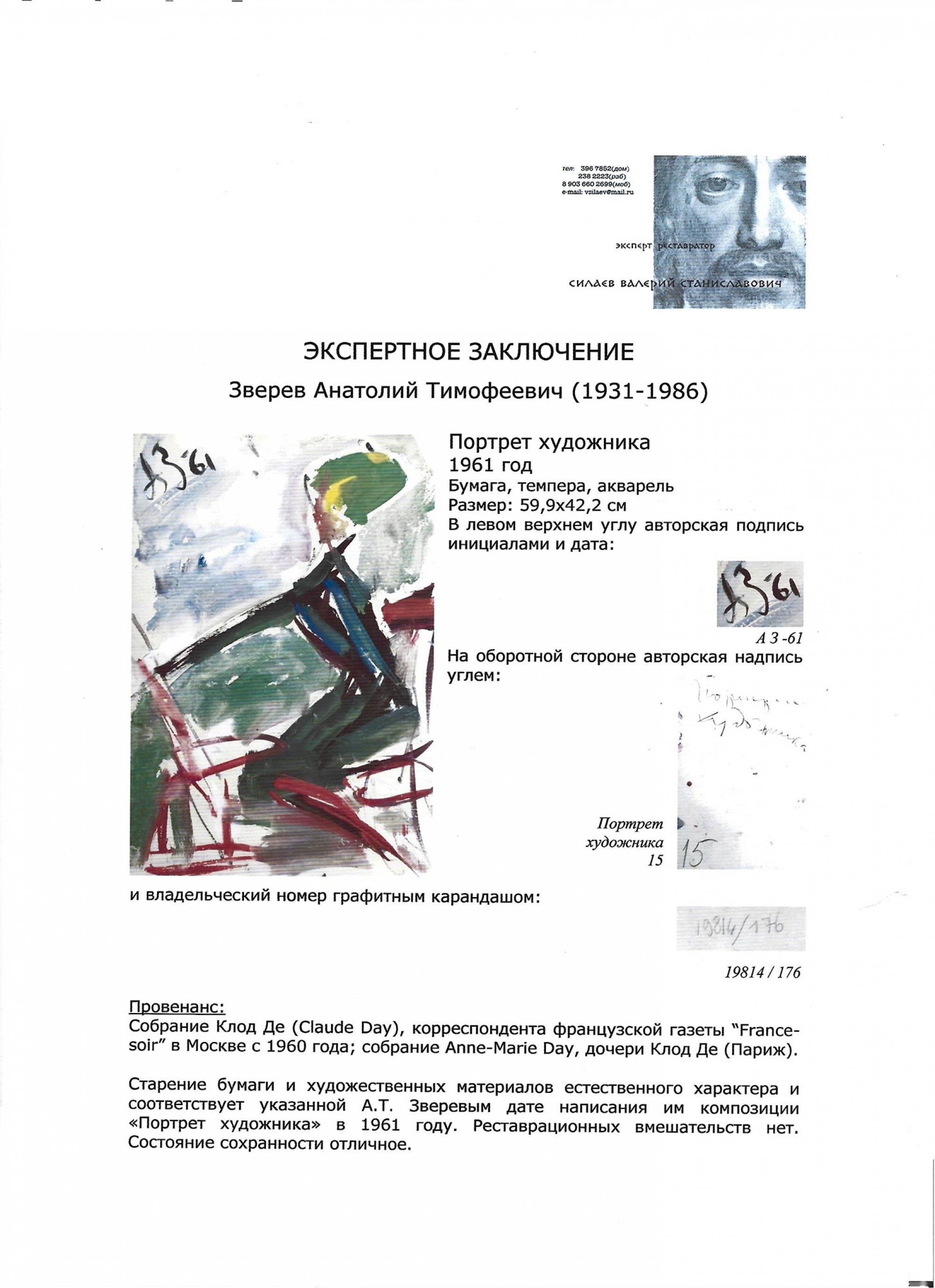 ЗВЕРЕВ Анатолий Тимофеевич (1931–1986) Портрет художника. 1961 ID лота: 113391