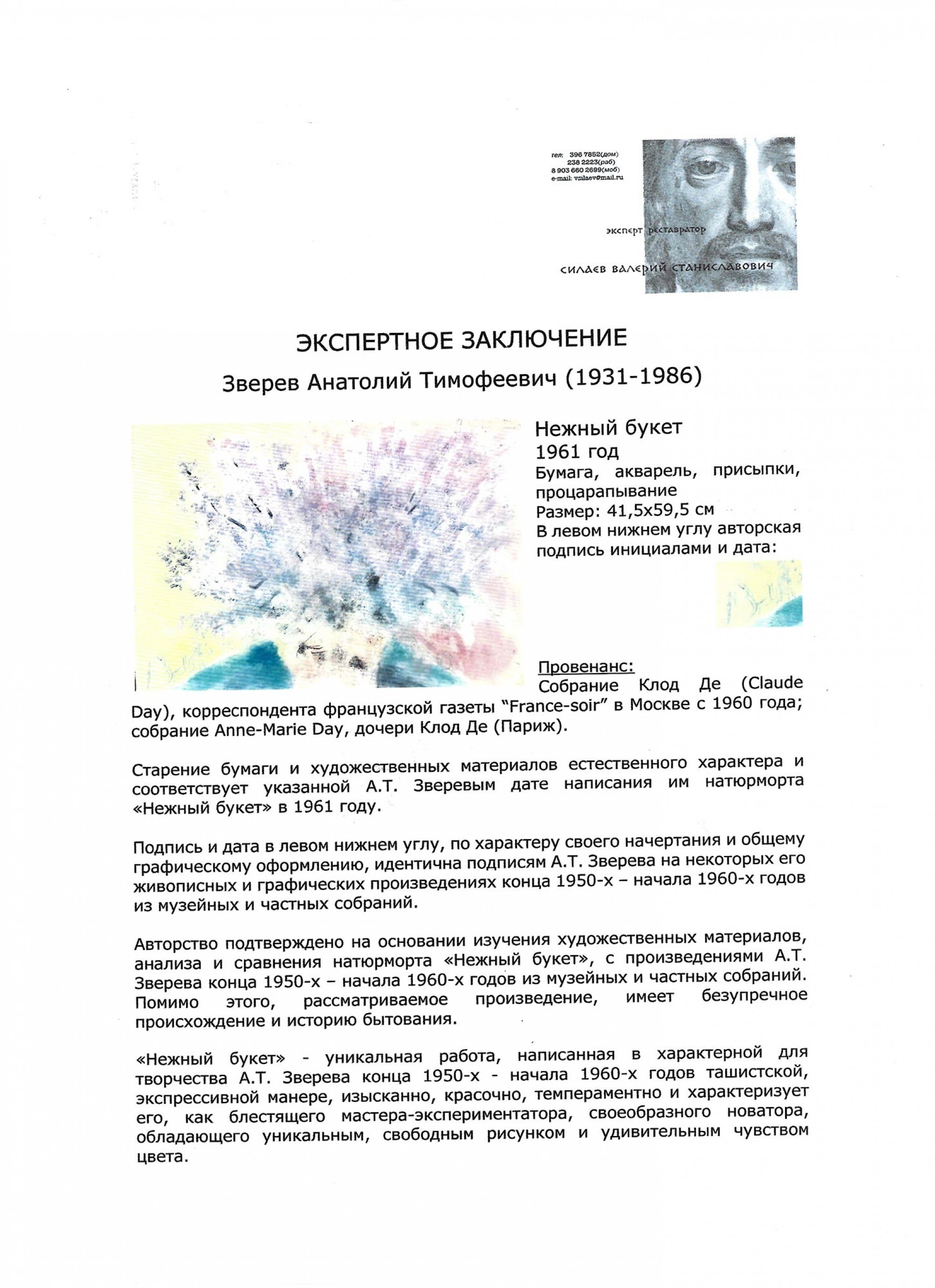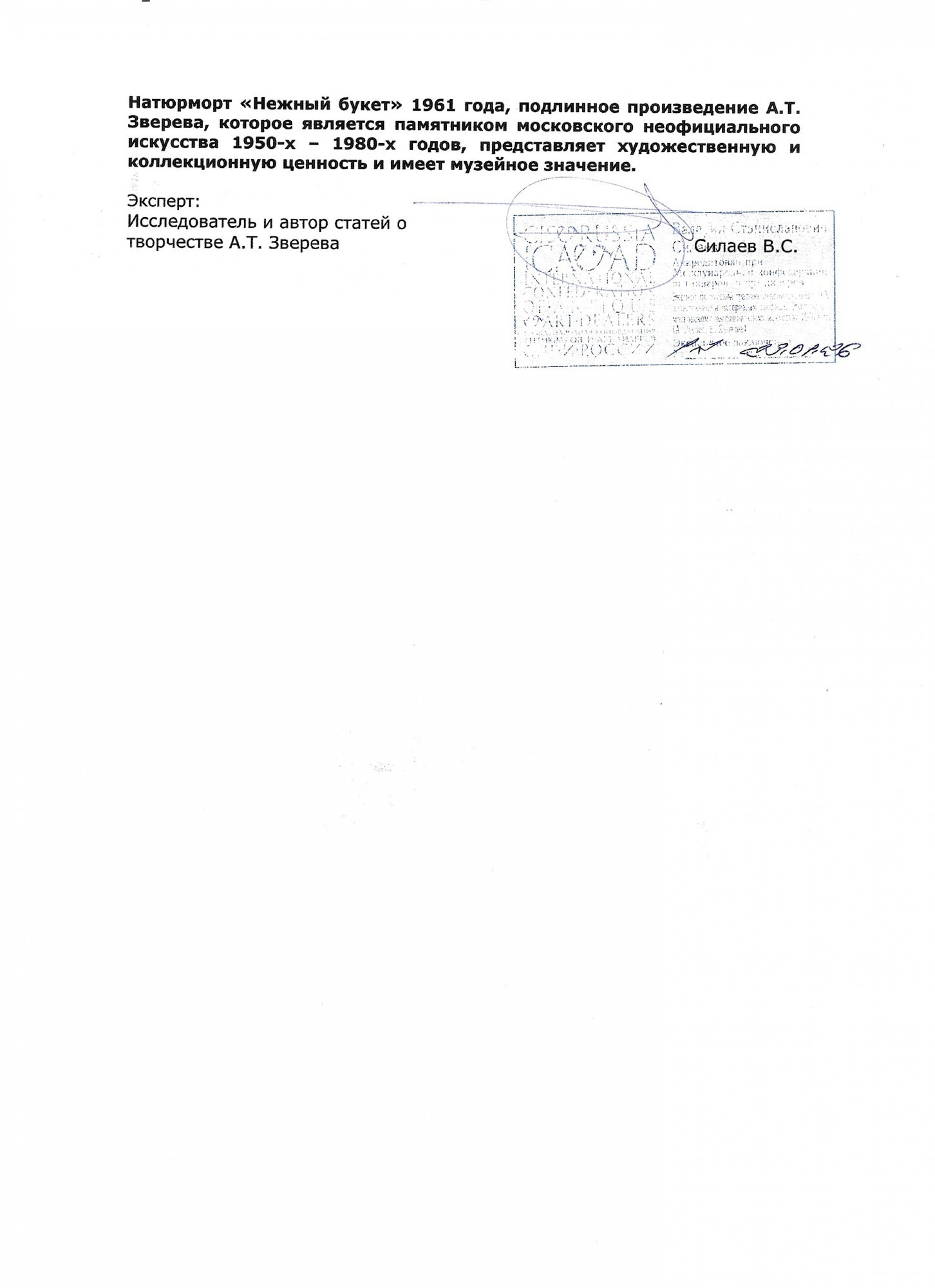 ЗВЕРЕВ Анатолий Тимофеевич (1931–1986) Нежный букет. 1961 ID лота: 113439