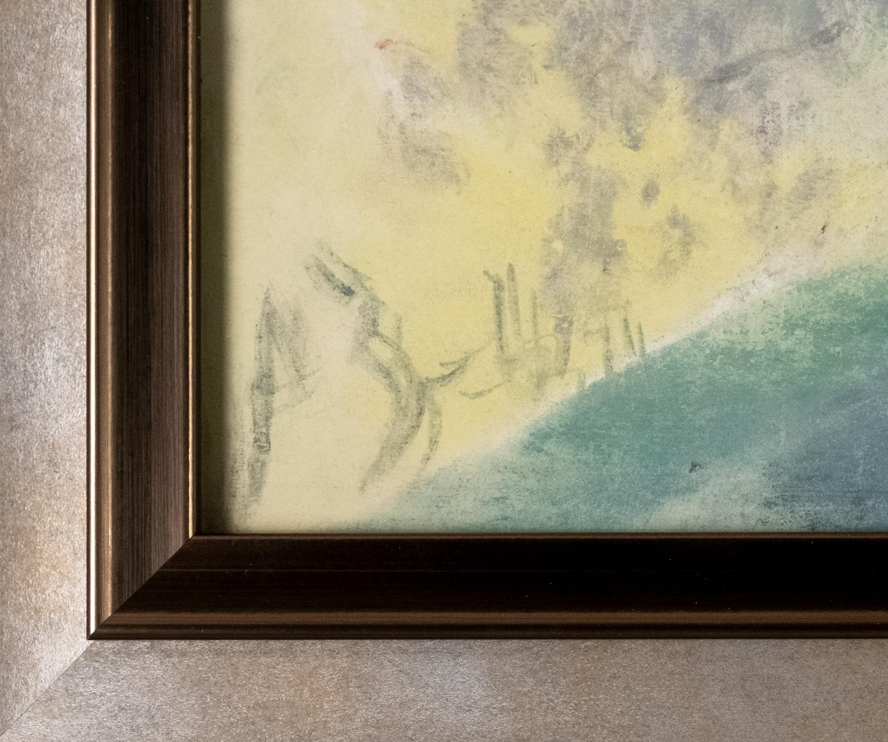 Работа оформлена в раме под стеклом. Размер в раме: 58 × 76