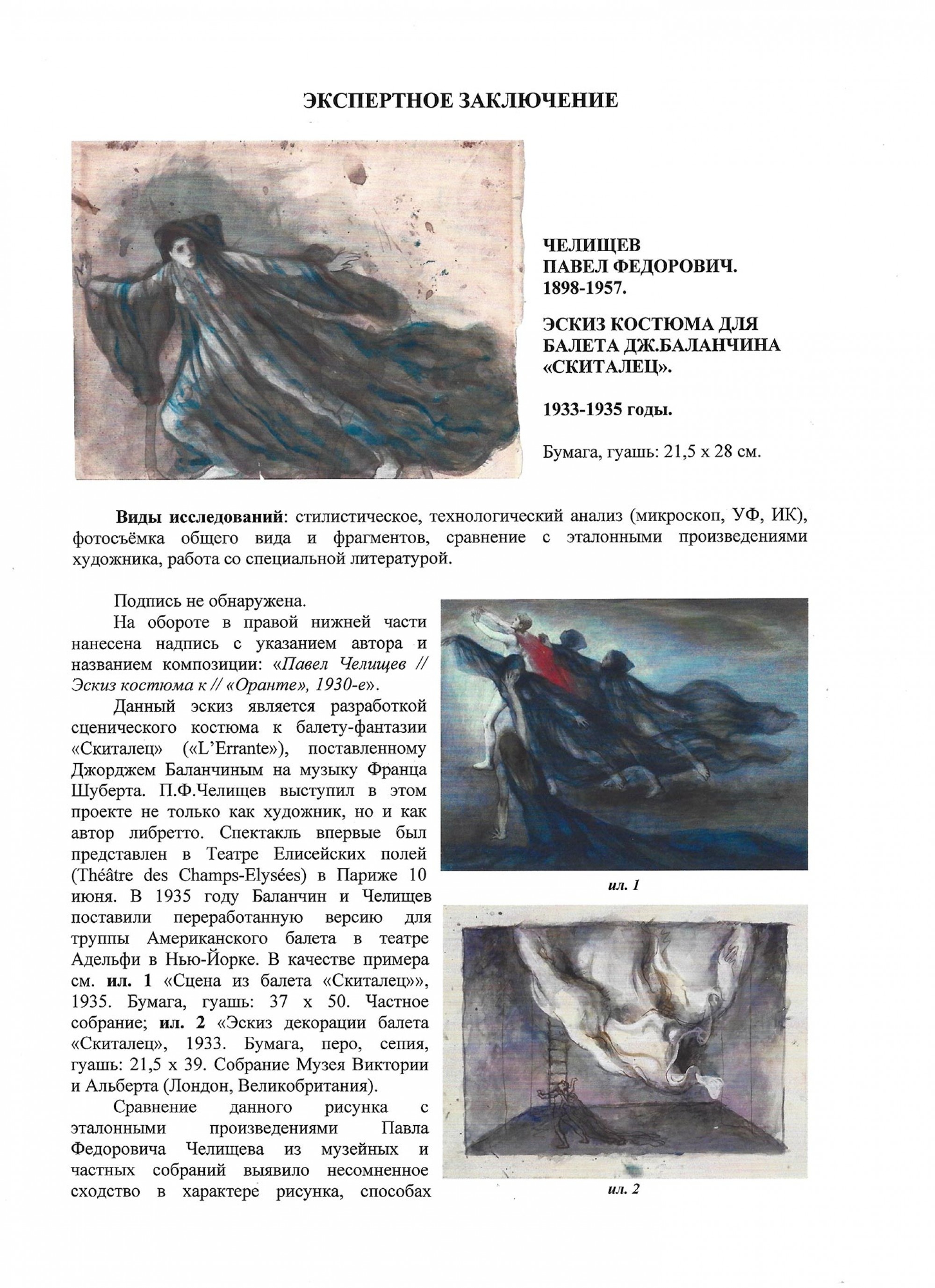 ЧЕЛИЩЕВ Павел Фёдорович (1898–1957) Эскиз костюма для балета Джорджа Баланчина «Скиталец». 1933–1935
