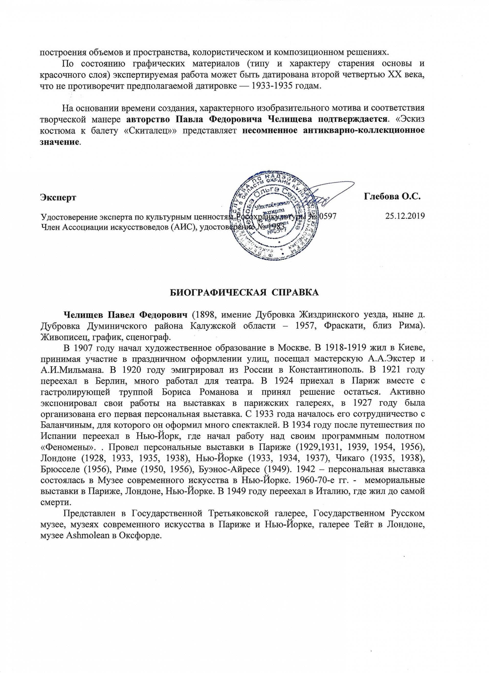 Экспертное заключение от 25.12.2019. Эксперт: О. С. Глебова