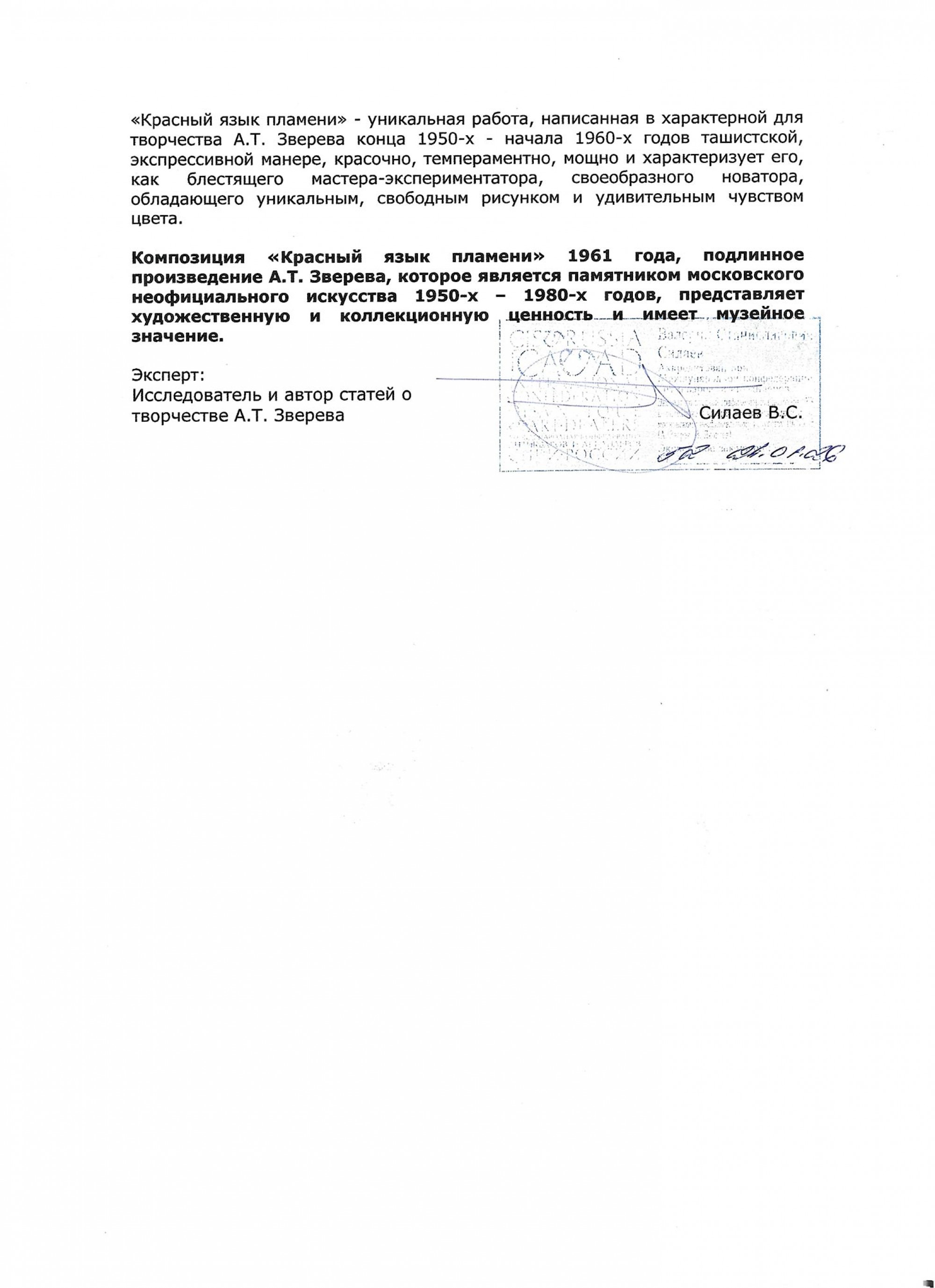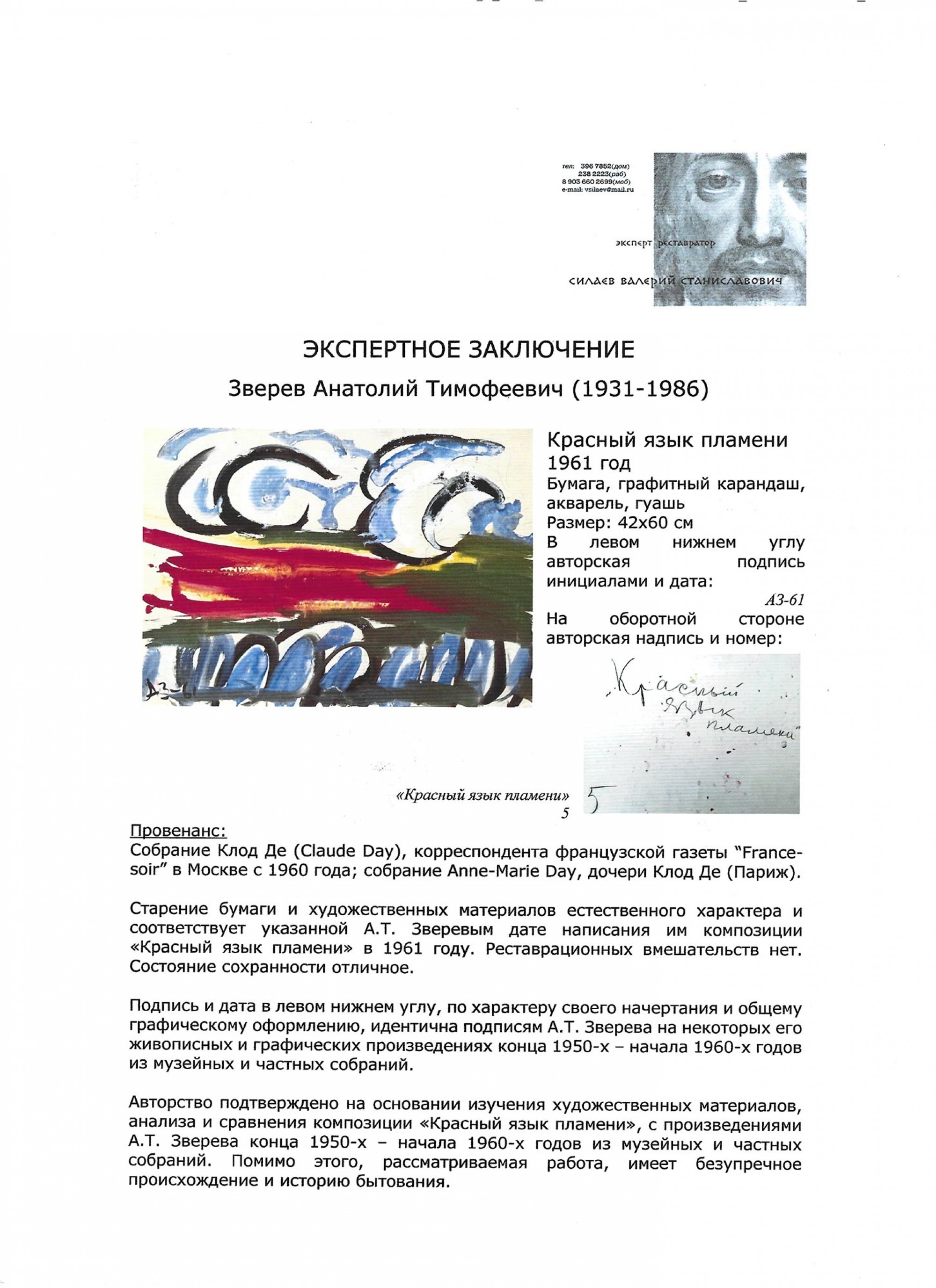 ЗВЕРЕВ Анатолий Тимофеевич (1931–1986) Красный язык пламени. 1961