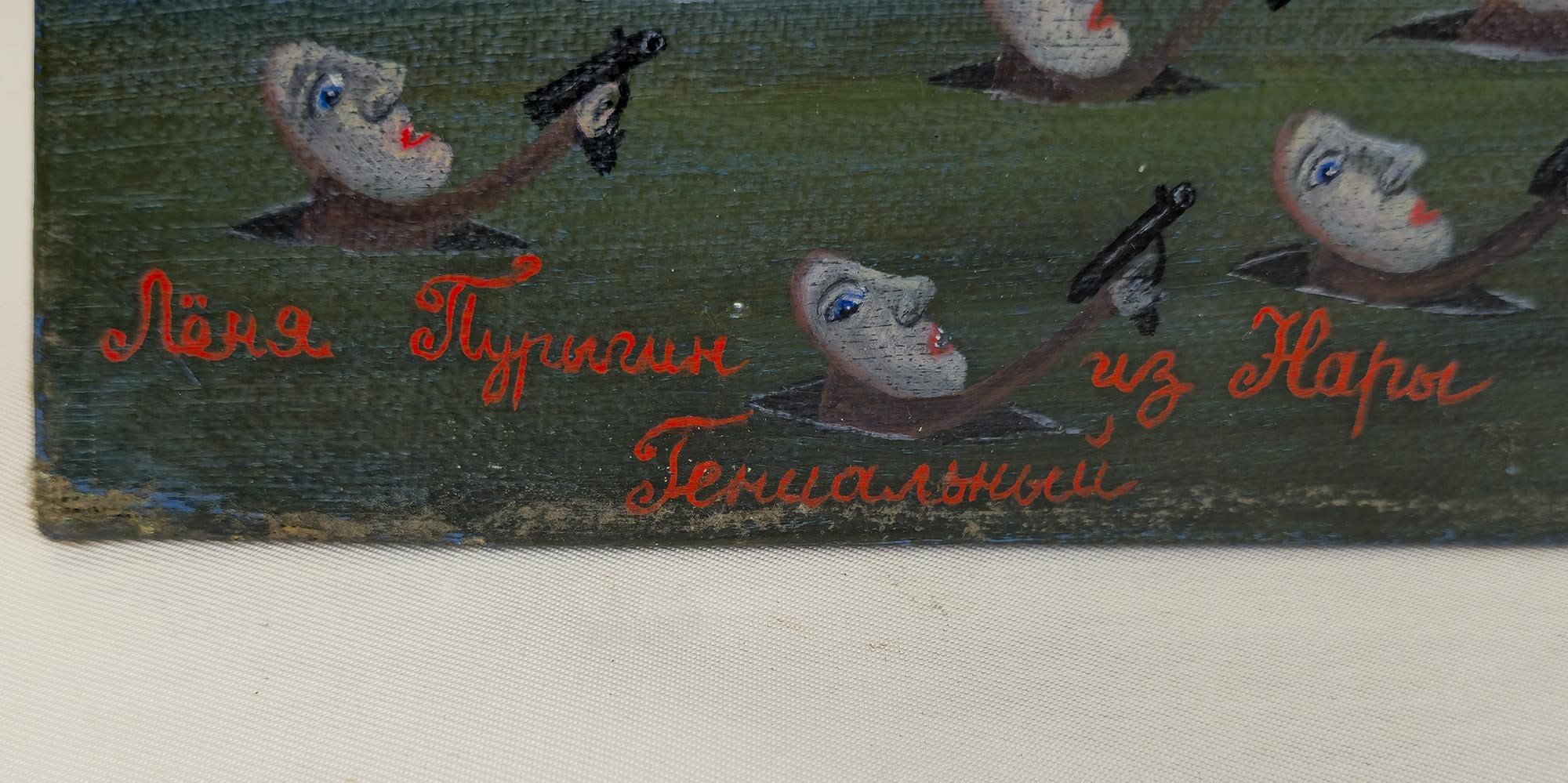 В левом нижнем углу подпись: Лёня Пурыгин из Нары Гениальный