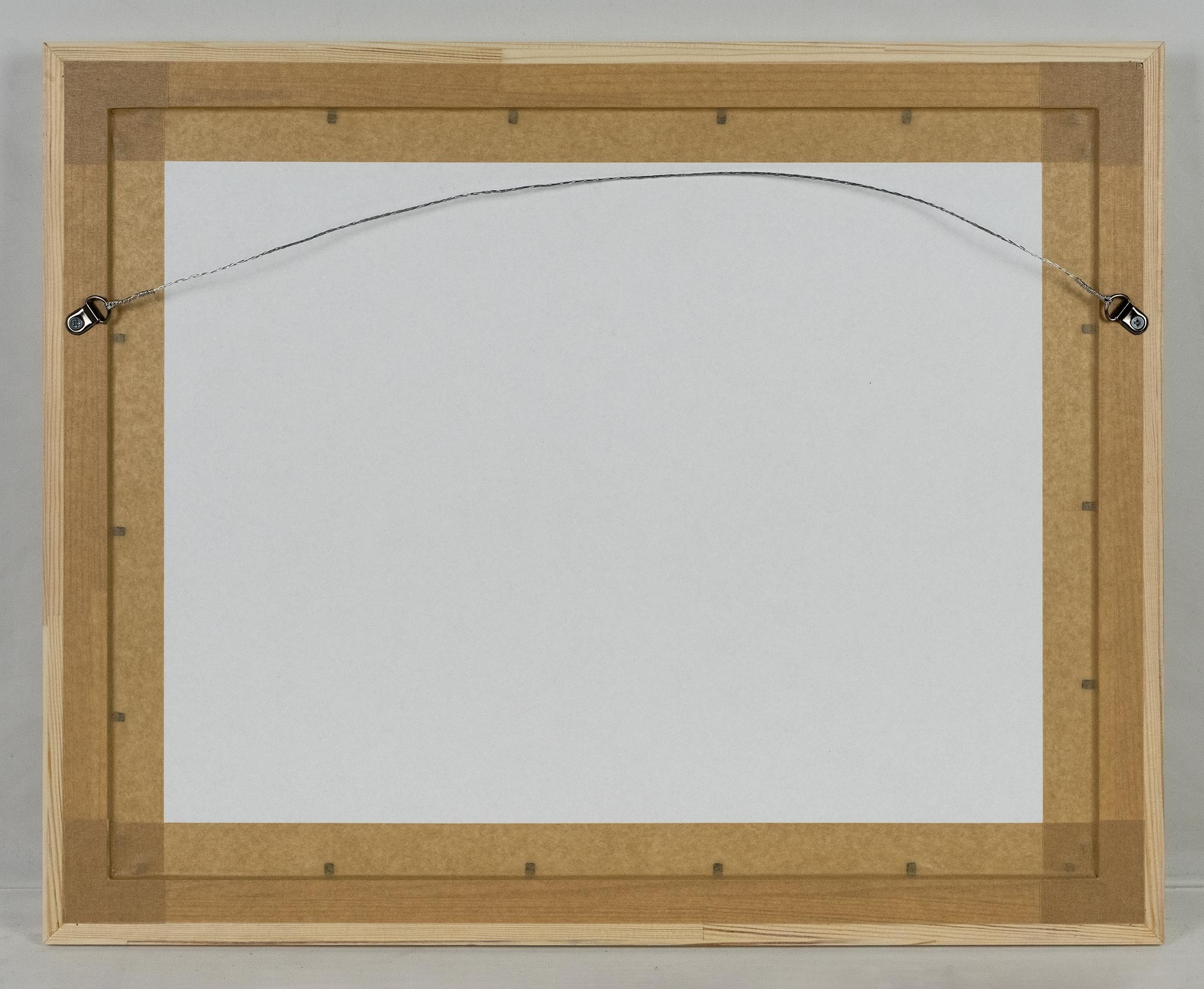 Лист смонтирован на паспарту, оформлен в раме под стеклом. Размер в раме: 42 × 52
