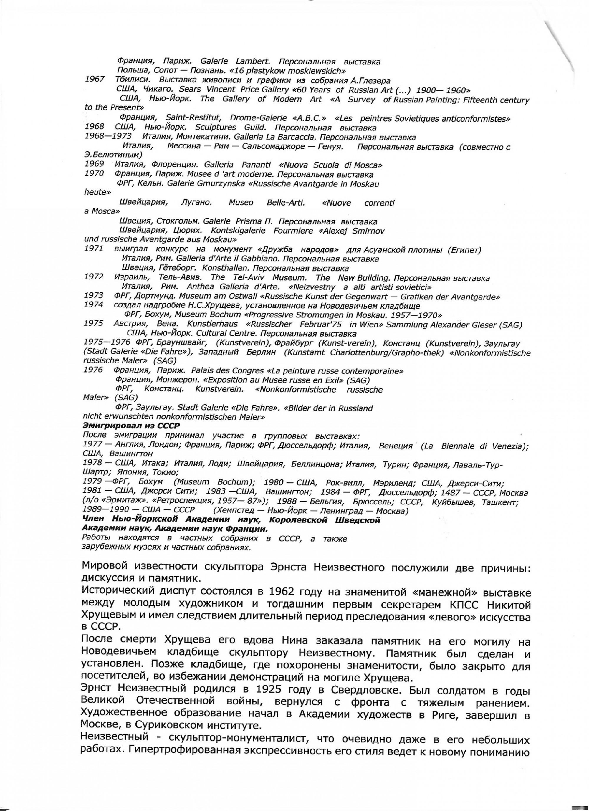 Статья: «Художник Эрнст Неизвестный. Рекомендации, цены, инвестиционный аспект»