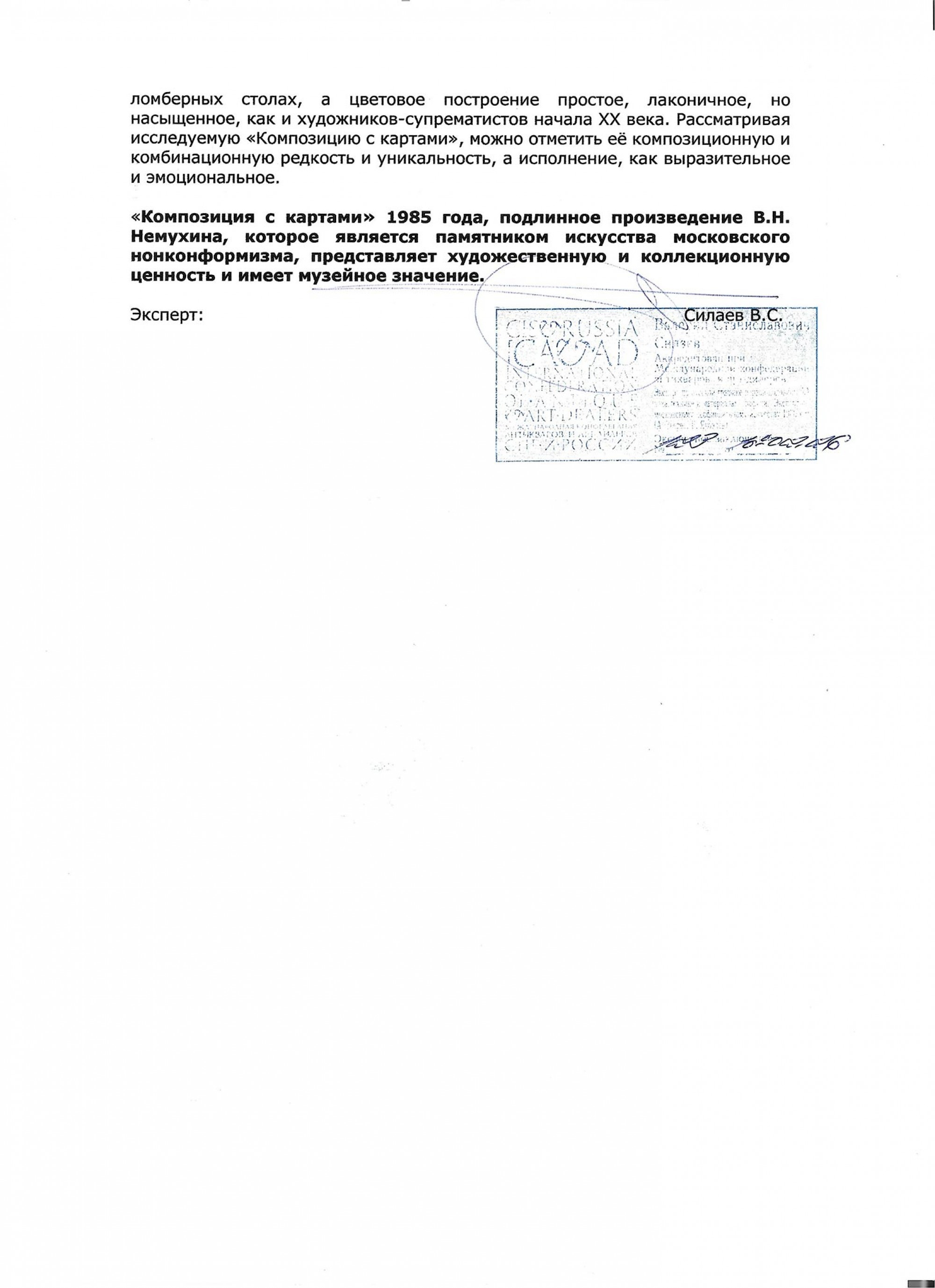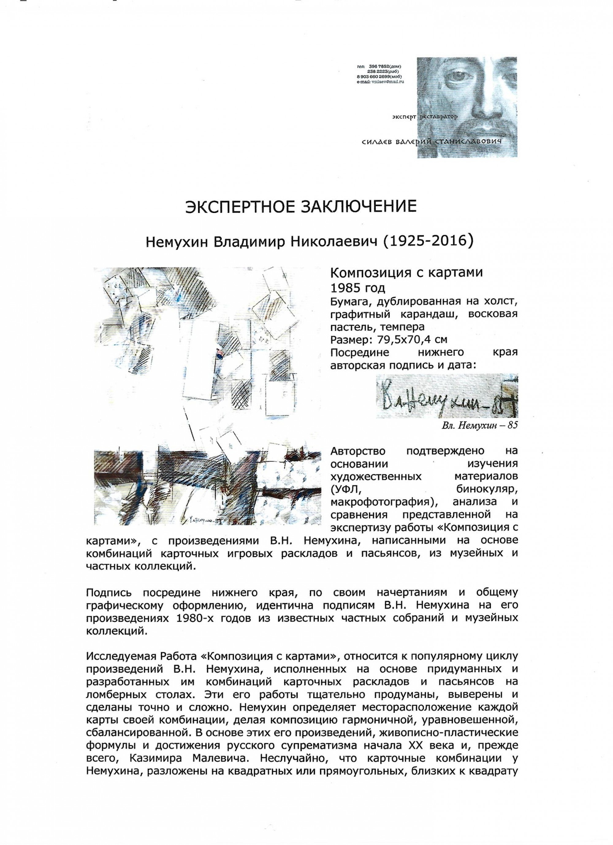 НЕМУХИН Владимир Николаевич (1925–2016) Композиция с картами. 1985