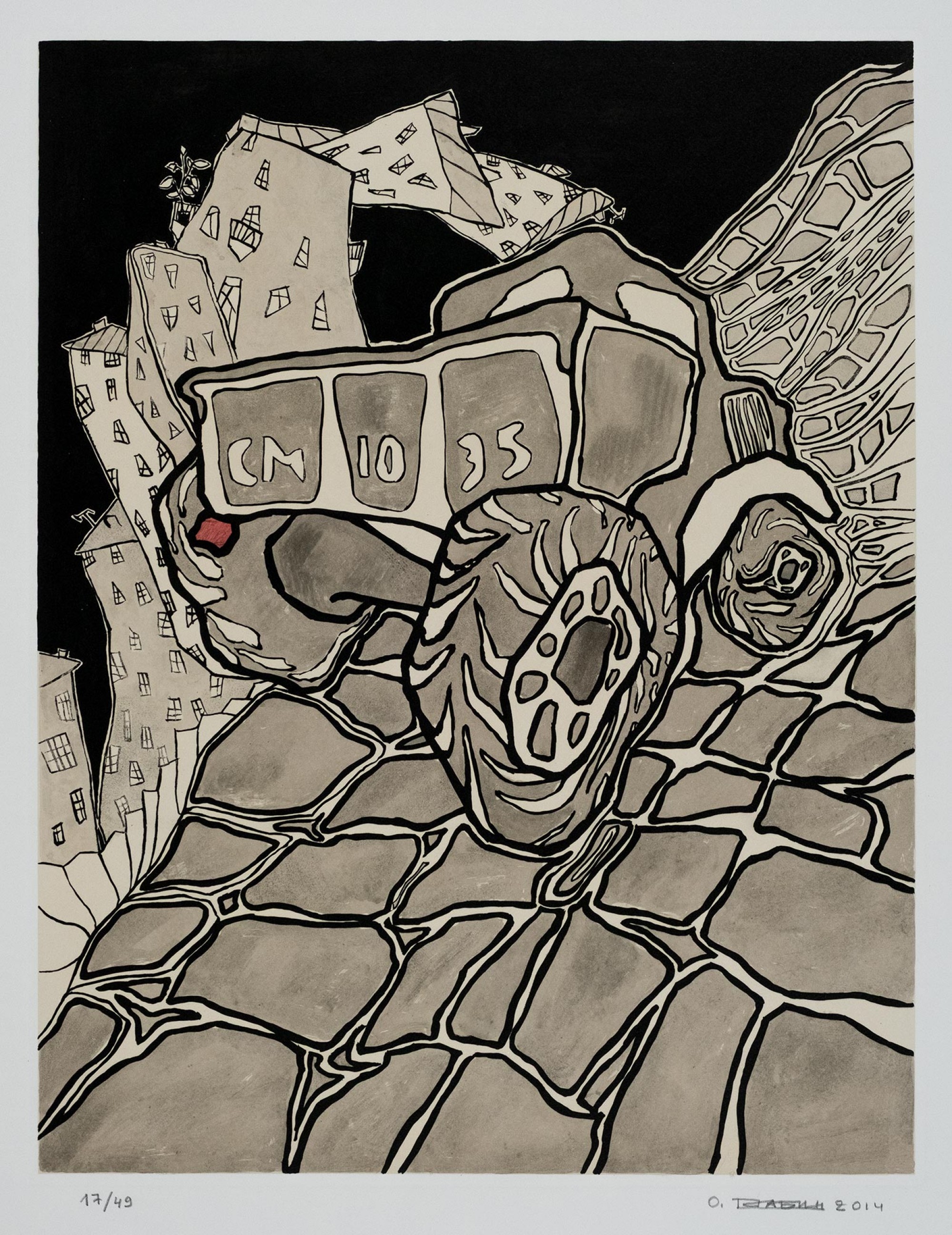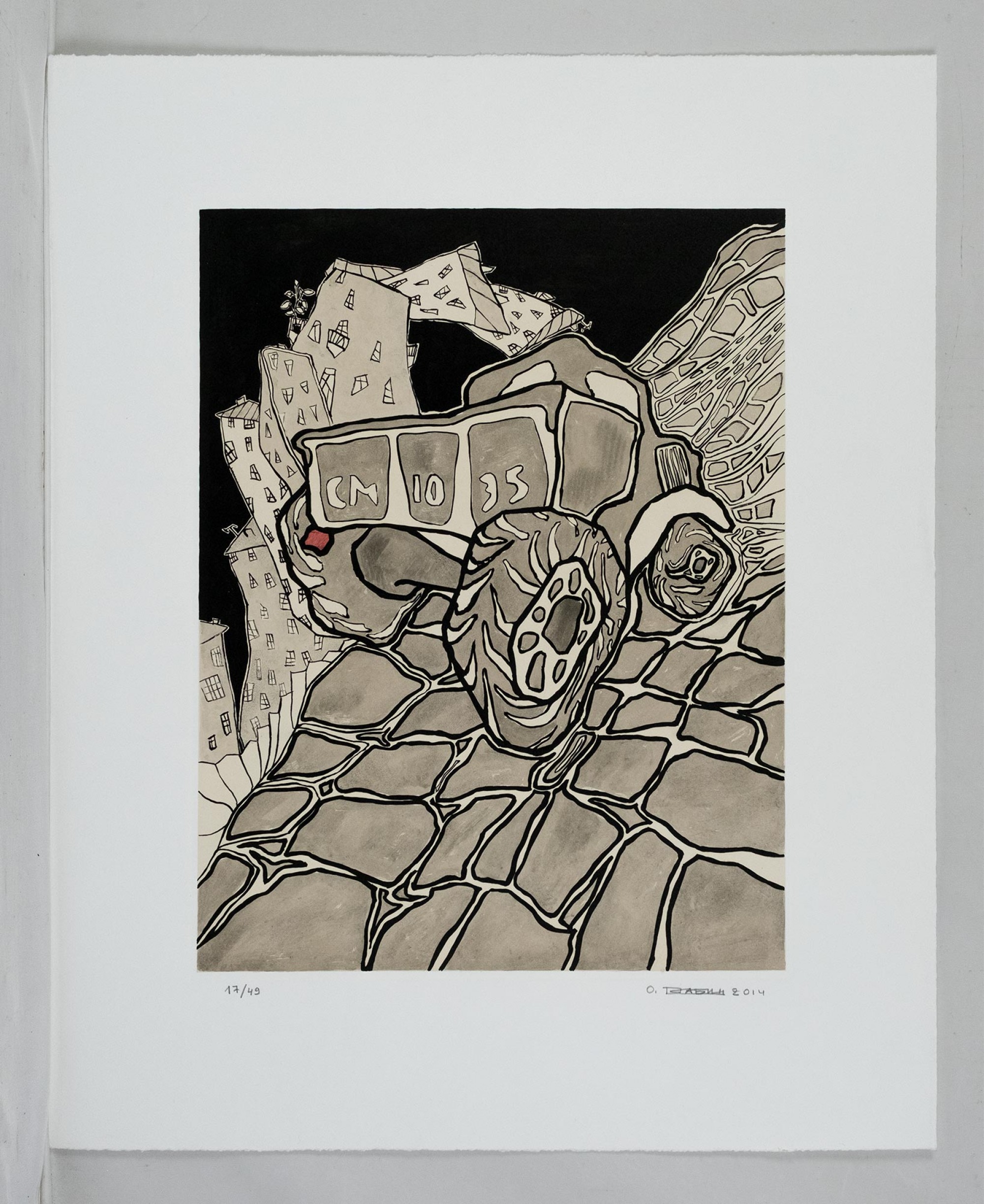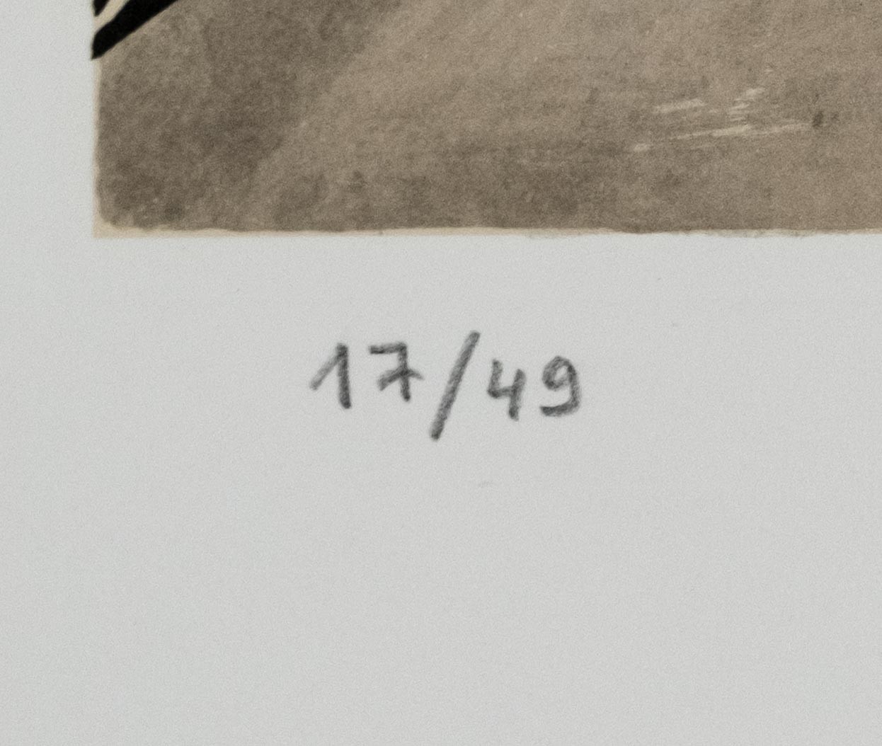 Бумага, цветной эстамп. 48 × 37 (изображение). 69 × 56 (лист). Тираж 49 экземпляров. Номер в тираже 17 из 49
